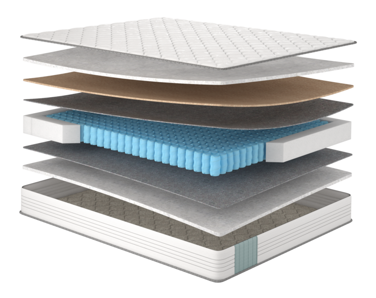 | Шар 5 | Пружинний блок Pocket Spring з розділенням на 5 зон, посилений двома рамками зі сталі |