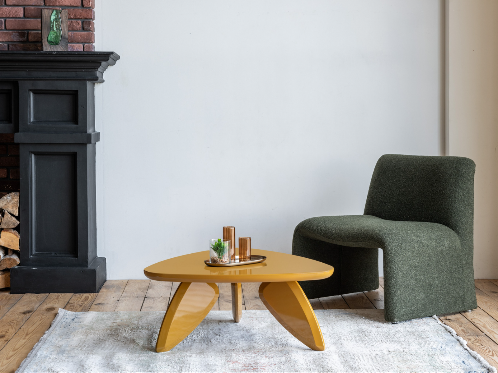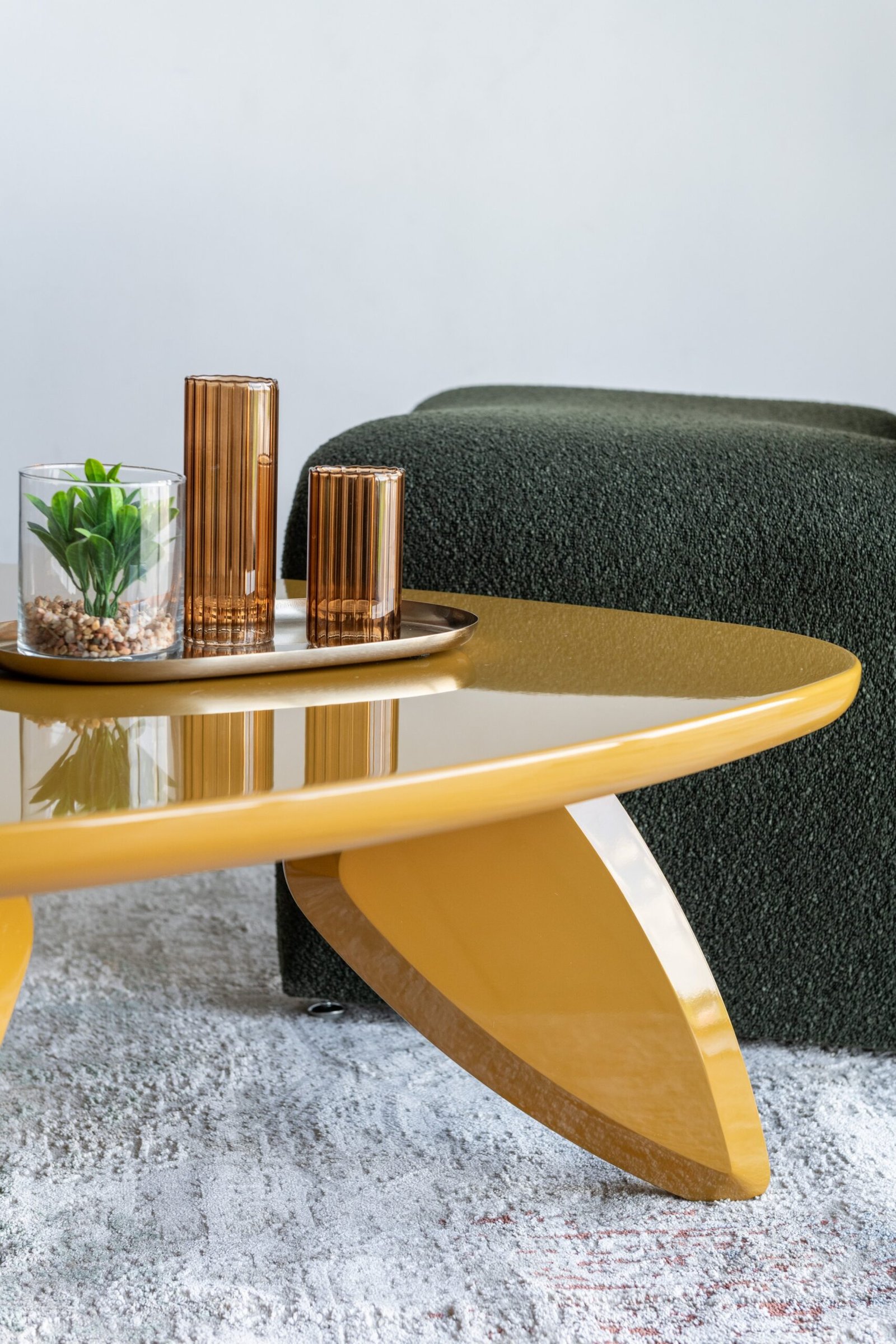 Журнальний стіл Вітторіо C-300 в кольорі охра — це стильний та виразний акцент для сучасного інтер’єру. Його оригінальна трикутна форма додає динаміки та легкості простору, роблячи композицію кімнати більш живою та нестандартною.