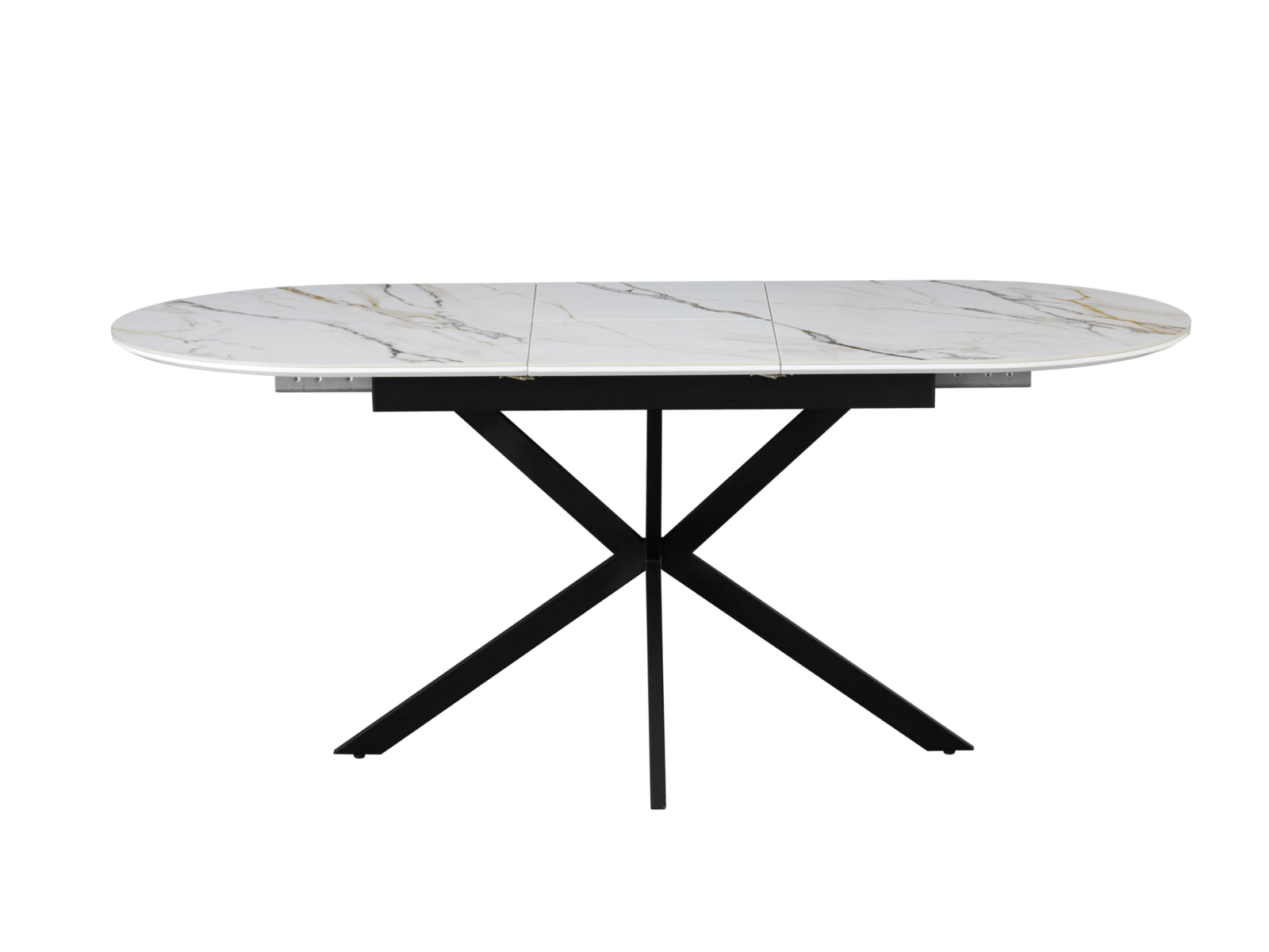 Керамічний стіл Верона TML-1335 калакатта голд + чорний — це вишукане поєднання елегантності, стилю та сучасних технологій. Його овальна форма додає м’якості лініям інтер’єру, а відтінок калакатта голд із благородними прожилками нагадує текстуру природного мармуру, створюючи відчуття розкоші та витонченості.