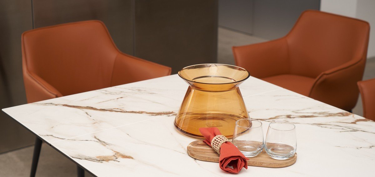 Керамічний стіл Олімпія ТМL-985 в кольорі калакатта голд + чорний — це поєднання розкоші та сучасного стилю. Його прямокутна стільниця, виготовлена з матової кераміки та гартованого скла, не тільки виглядає елегантно, а й володіє високою міцністю, стійкістю до подряпин, вологи та температурних коливань. Золотистий відтінок калакатти в поєднанні з чорним створює враження вишуканості та сучасності, роблячи цей стіл ідеальним акцентом у будь-якому інтер’єрі.