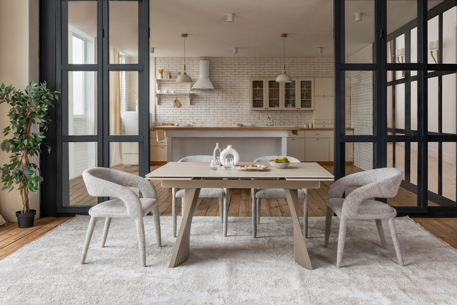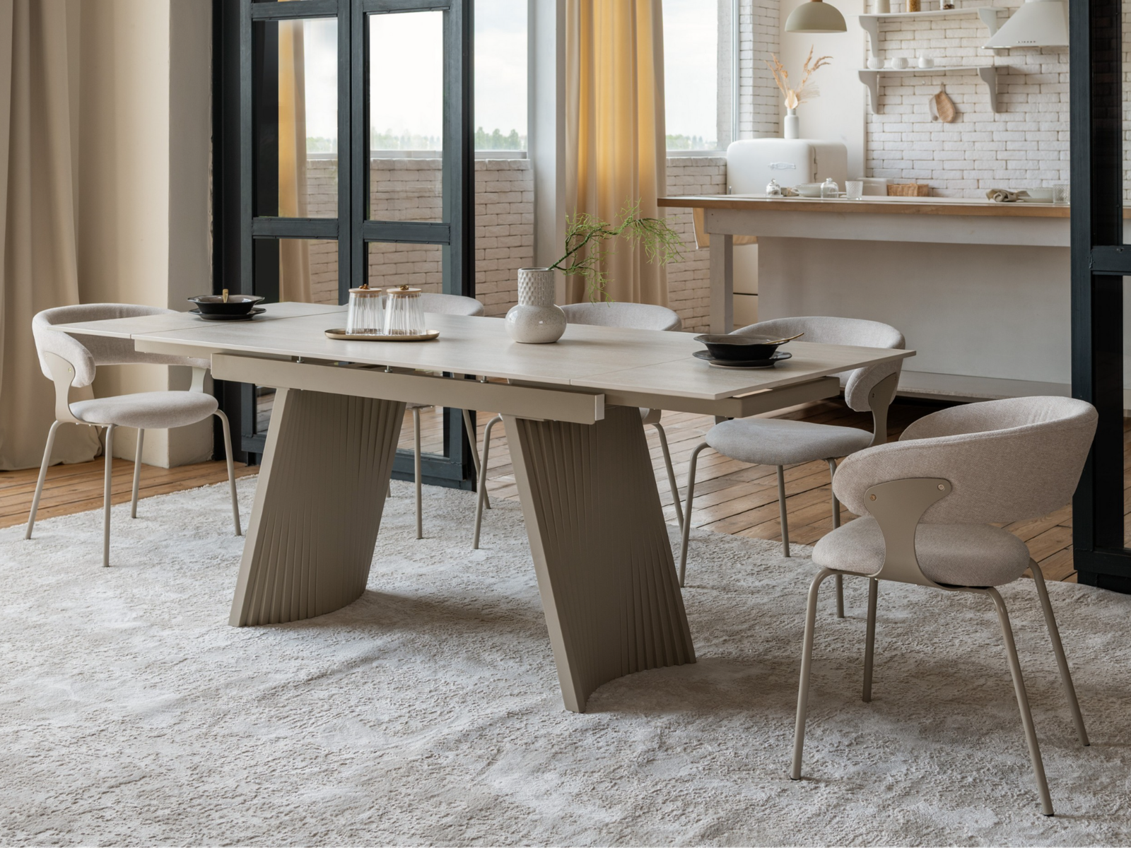 Керамічний стіл Олімпія TML-985 у відтінку крема марфіль — це поєднання сучасного стилю, елегантності та функціональності. Його матова керамічна стільниця не лише надає розкішного вигляду, а й відзначається високою стійкістю до подряпин, впливу вологи та температур.