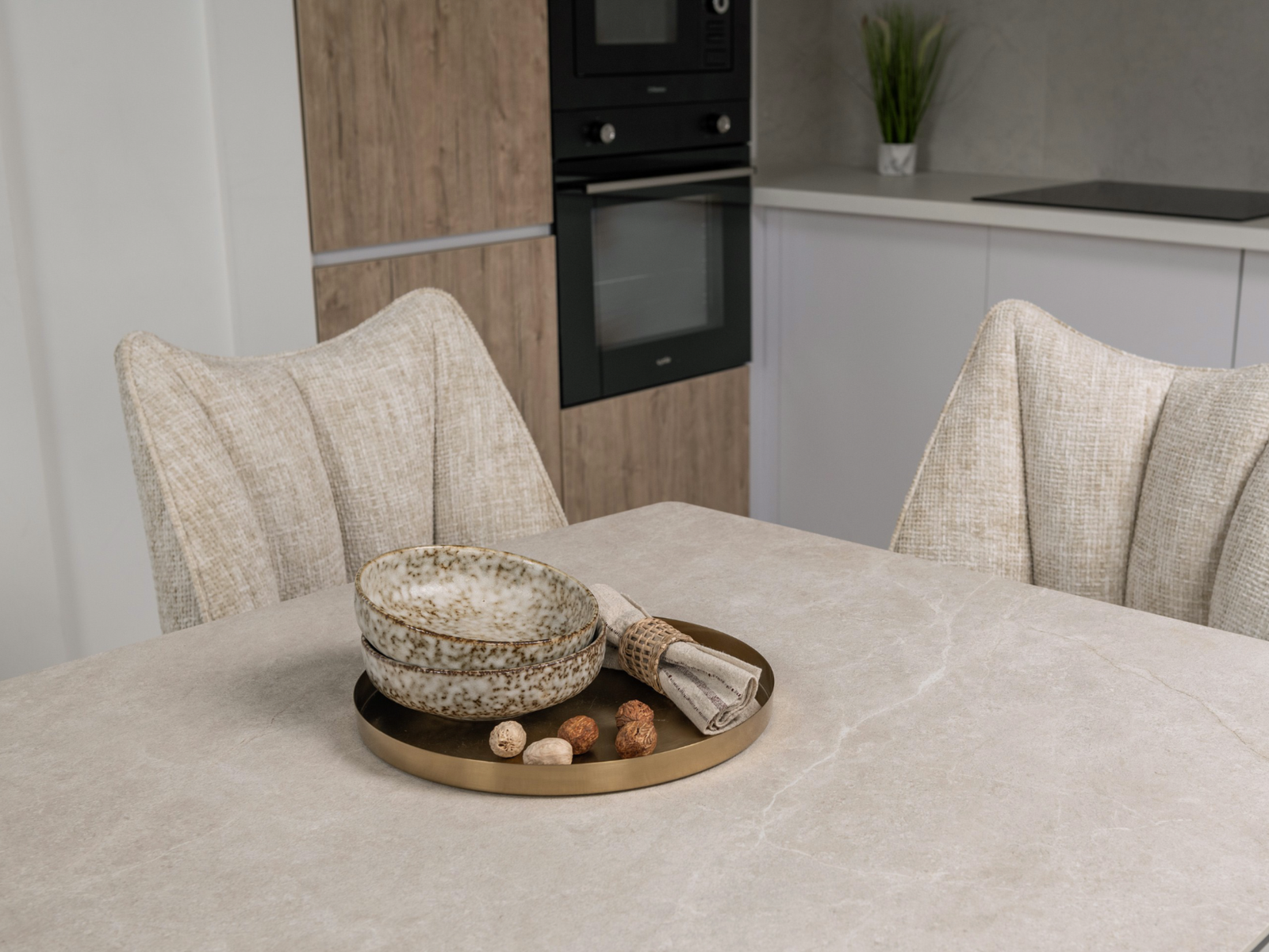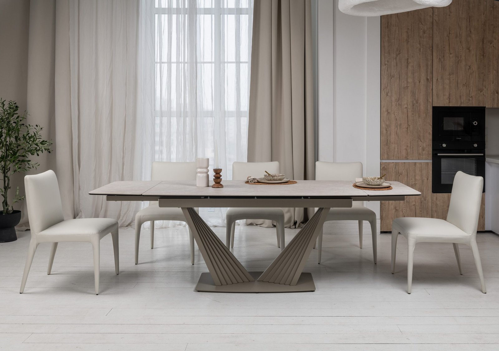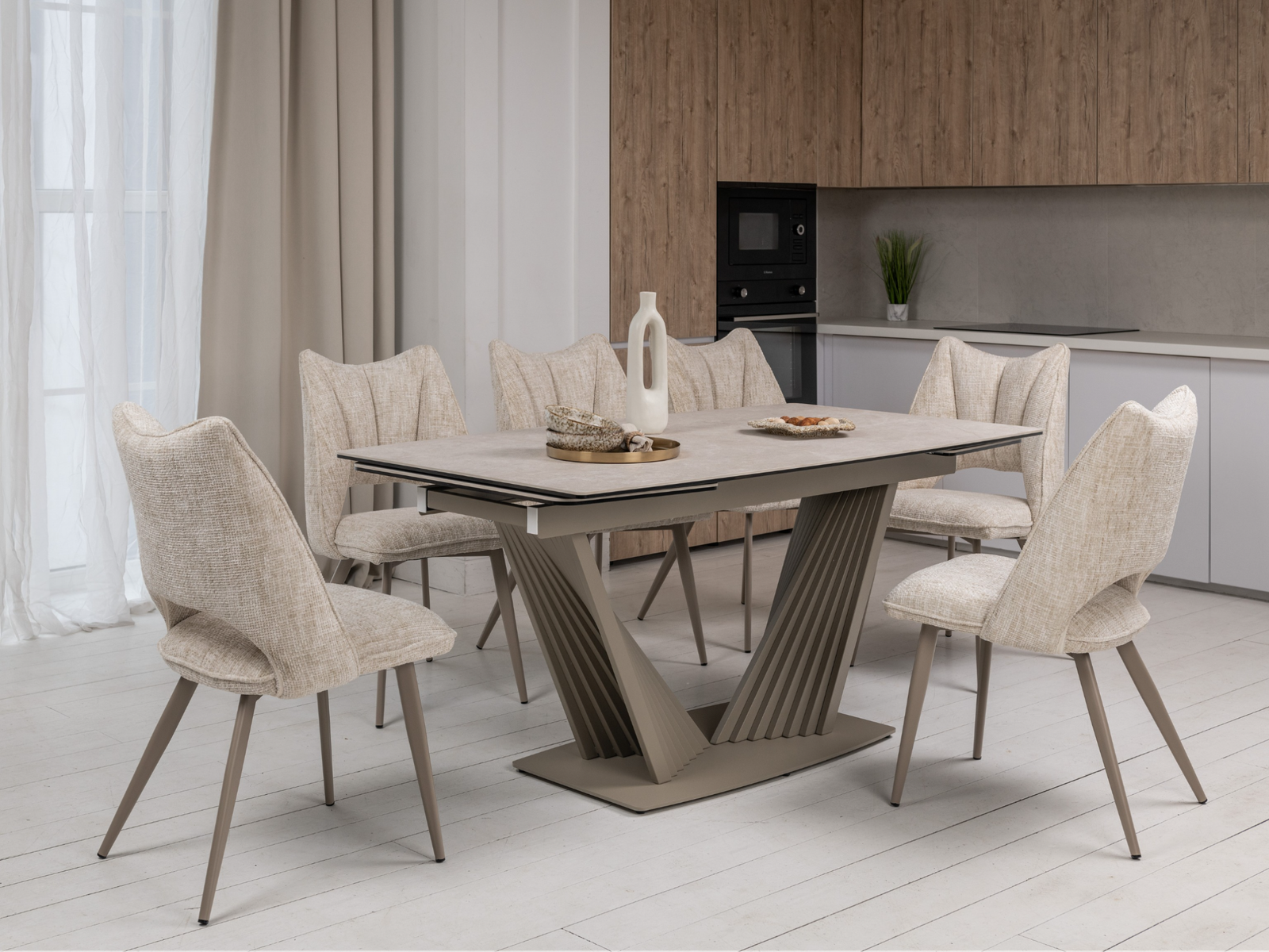 Матова керамічна поверхня потребує мінімального догляду – достатньо простої очистки, що робить стіл практичним у повсякденному використанні.