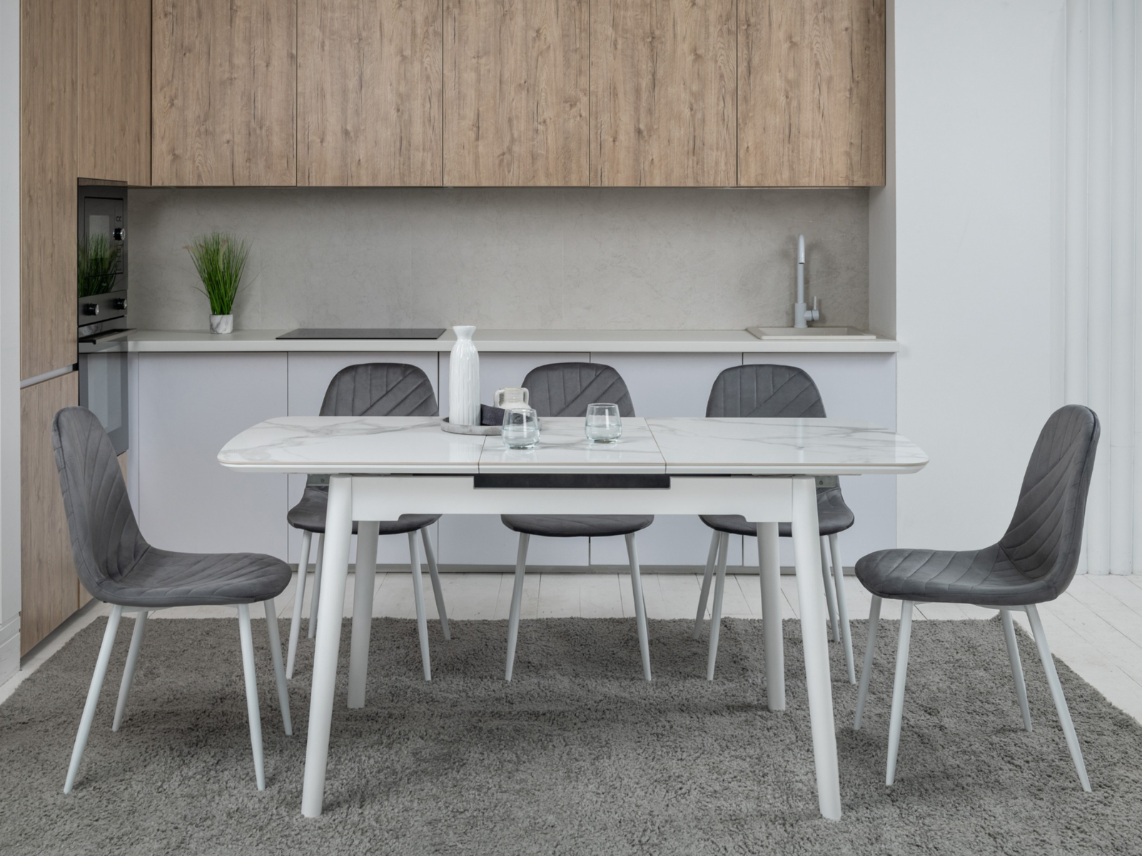 Стіл з білими ніжками може бути відмінним вибором для будь-якого інтер’єру. Його можна поєднувати з різними стилями столових груп, включаючи сучасні, скандинавські, мінімалістичні та багато інших. Він також чудово поєднується зі стільницями різних кольорів та матеріалів, створюючи безліч варіантів для створення стильного інтер’єру.