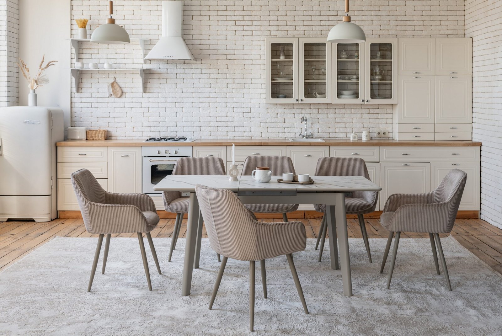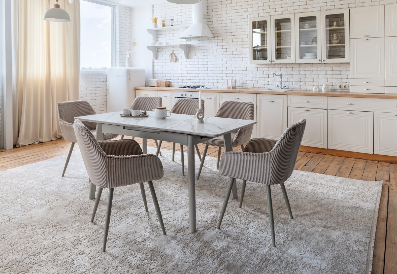 TM-76 — сучасний розкладний стіл, який поєднує витонченість природних відтінків та надійність перевірених матеріалів. Відтінок голден сенд із теплим пісочним акцентом надає інтер’єру затишку та вишуканої теплоти. Ідеальний вибір для їдальні чи кухні у натуральних, скандинавських або середземноморських тонах.