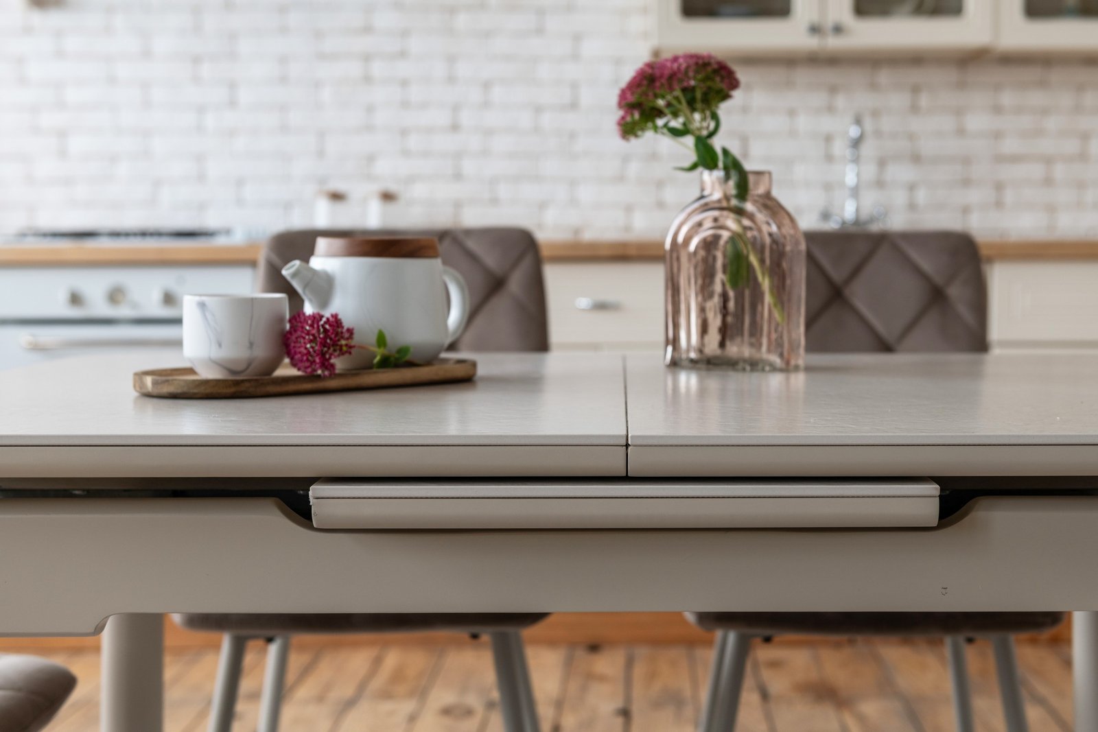 Завдяки автоматичному механізму розкладки стіл легко трансформується з компактного формату 110 см до просторого 150 см — ідеальне рішення для зустрічей із близькими чи святкових вечерь.