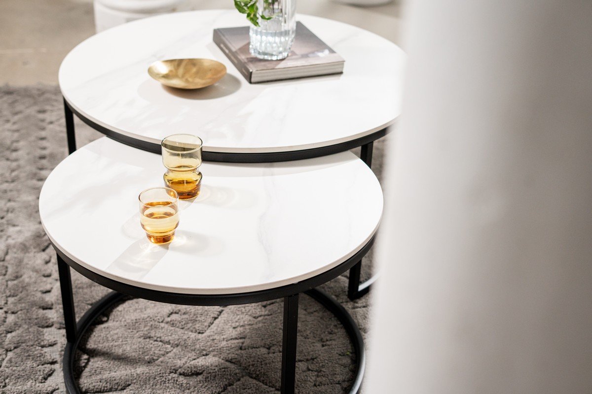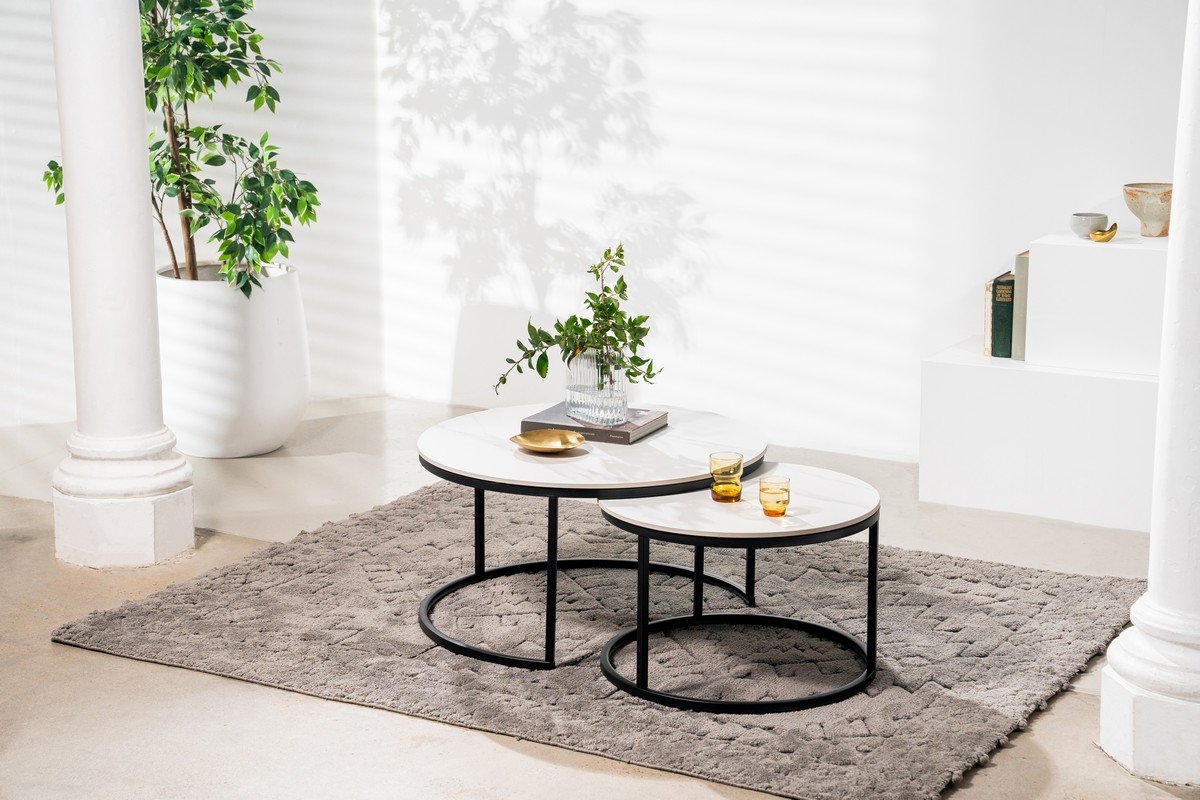 Комплект журнальних столів CT-35 Лоренза в кольорі “каса вайт” — це стильне та сучасне рішення для вашого інтер’єру. Набір включає два круглих столи різного діаметра, що дозволяє використовувати їх як разом, так і окремо, залежно від ваших потреб і простору.