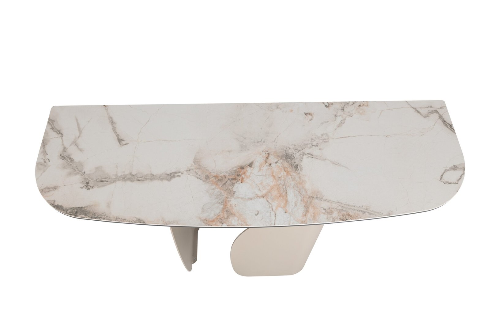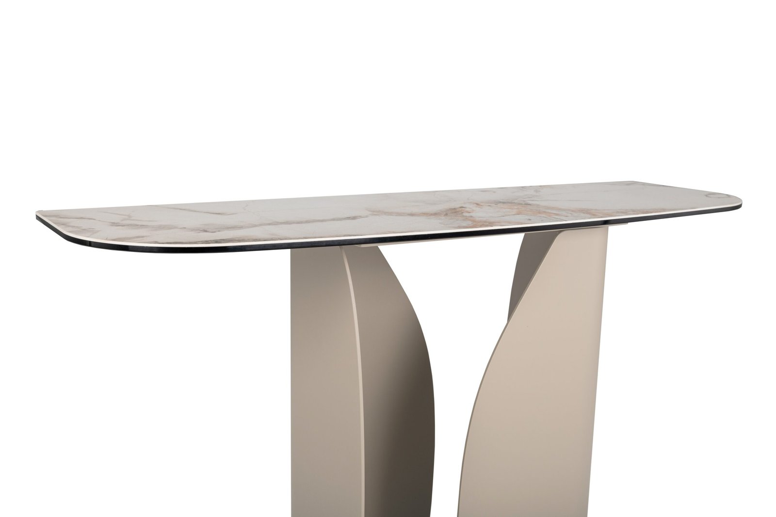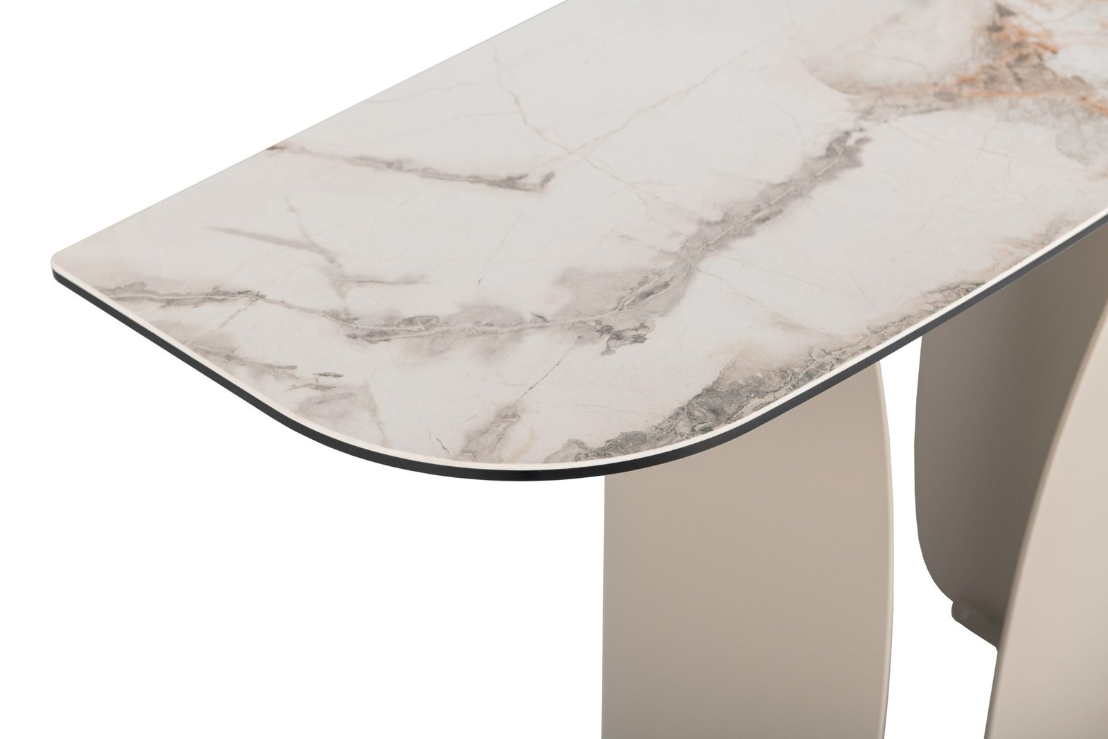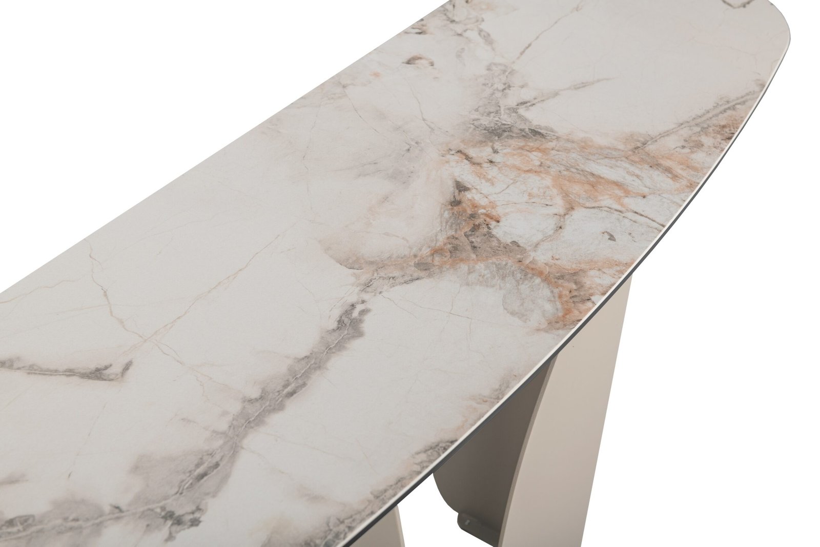 Консоль “Крістіано” в кольорі аврора голд + бежевий — це втілення вишуканості та стриманої елегантності. Її прямокутна стільниця з матової кераміки та гартованого скла зачаровує благородною текстурою, поєднуючи природну естетику з високою міцністю. Стійка до подряпин, вологи та температурних впливів, вона зберігає бездоганний вигляд у будь-яких умовах.