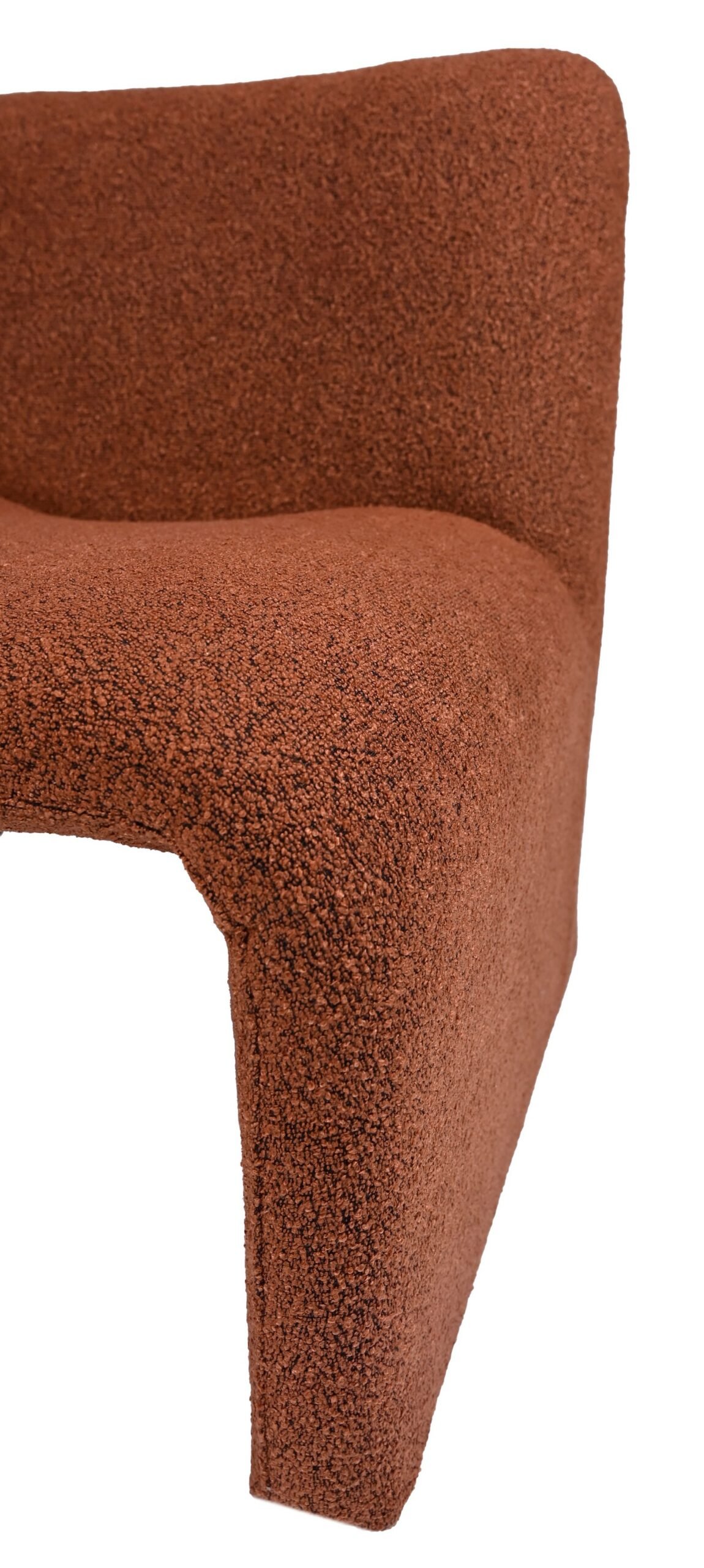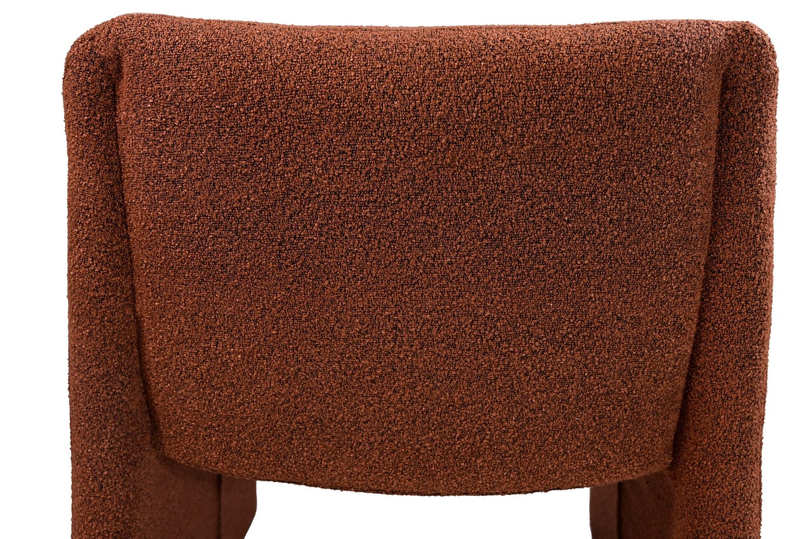 Легкість в обслуговуванні — тканина букле приємна на дотик і водночас практична у догляді. Теракотовий колір додає енергії та елегантності вашому простору, не перевантажуючи його. Це крісло стане не тільки зручним, але й стильним елементом вашого інтер’єру.