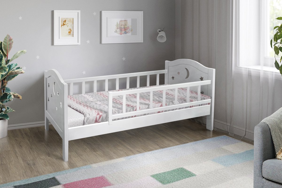 Розмір: 800*1900; габаритні розміри: до ширини спального місця + 8 см, до довжини + 20 см, висота спинки 85 см.Колір: Білий, Слонова кістка, Горіх, Темний горіх, Яблуня, Каштан.Матеріал: Масив вільхи, МДФ+шпон Ліжко «Адріатика» ідеально підходить для дітей віком від 3 років. В комплекті з ліжком йдуть підкроватні ящики, які можна використовувати для зберігання іграшок та постільної білизни.