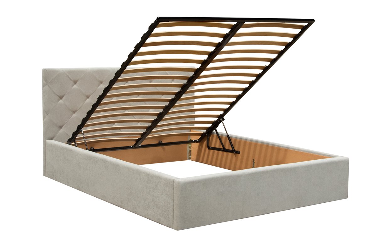 Ліжко "Атланта" з під’ємним механізмом. Висота узголів’я 1020 мм. Висота узніжжя 340 мм Розмір: під матрац: 1600*2000.Матеріал оббивки в складській програмі: тканина Аляска 10 ( Exim Textil); Відстань між ламелями: 60 мм.Габаритні розміри: до ширини + 150 мм; до довжини +170 мм; Глибина посадки матраца – 60 мм.