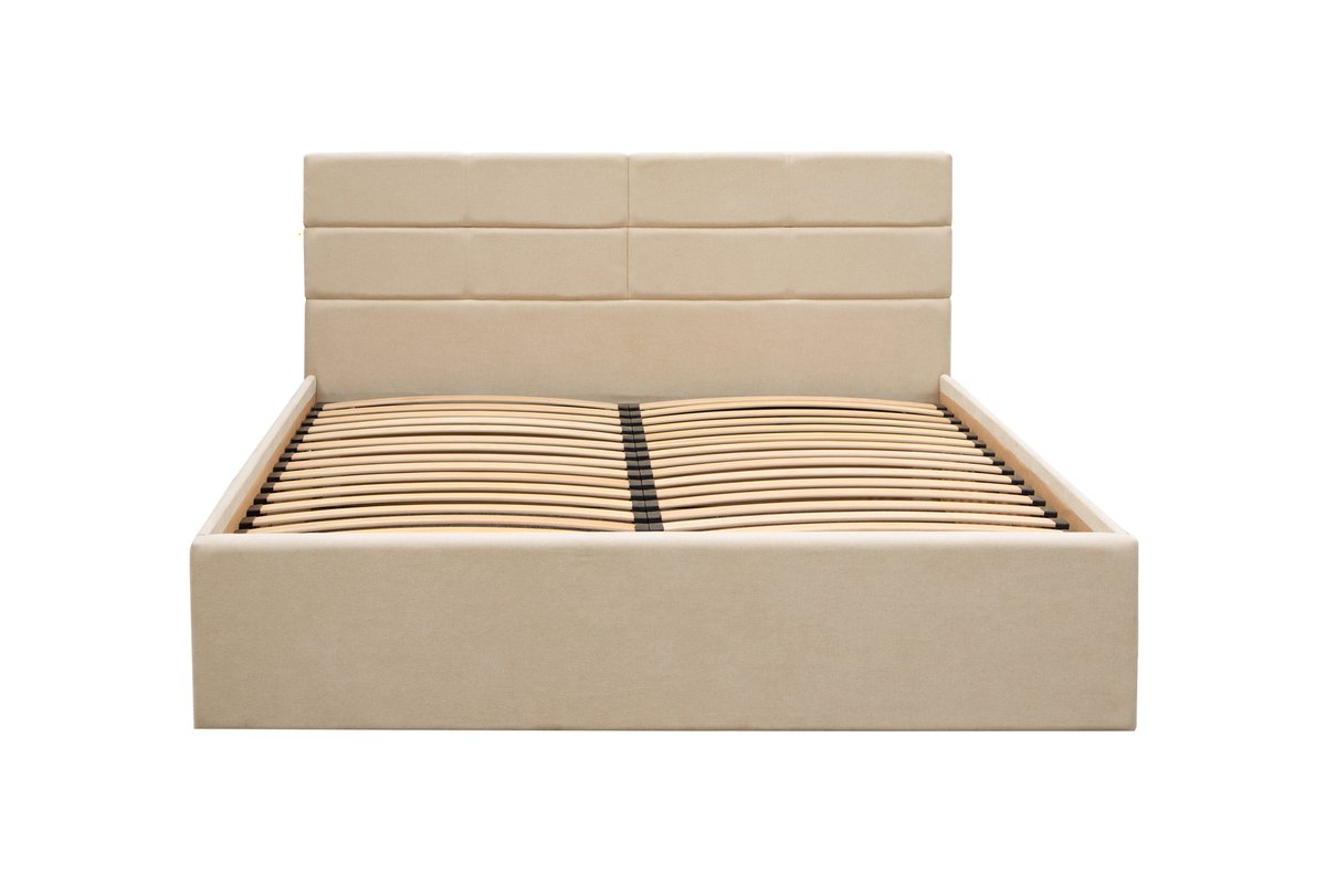 Ліжко "Дюна" з під’ємним механізмом. Висота узголів’я 1020 мм. Висота узніжжя 340 мм Розмір: під матрац: 1600*2000.Матеріал оббивки в складській програмі: тканина Аляска 10 ( Exim Textil); Відстань між ламелями: 60 мм.Габаритні розміри: до ширини + 150 мм; до довжини +170 мм; Глибина посадки матраца – 60 мм.
