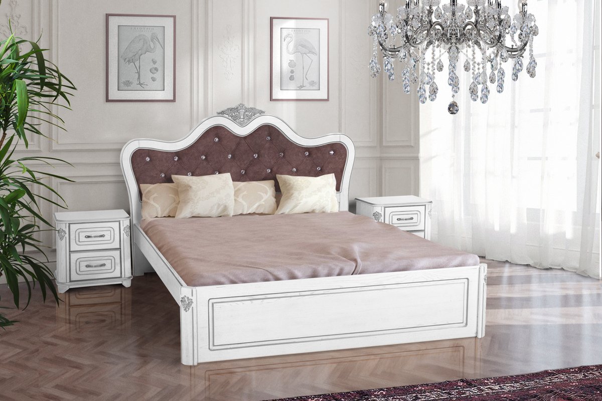 Двоспальне ліжко «Стефанія», виконане з натурального дерева — ясеня, модель поєднує в собі природне тепло матеріалу і високий стиль, який буде доречний в найвишуканіших інтер’єрах спалень. Ліжко «Грація» — це шедевр, який втілює в собі всі найсміливіші мрії! Масивне і різьблене узголів’я, просторе спальне місце, якісна і скрупульозна обробка ясеня — головні особливості цієї моделі! Кожна деталь, кожний вигин цього ліжка, це витвір мистецтва, максимальний ефект елегантності, досягається за рахунок гарного, глибокого кольору з ефектом старіння (патинування). Варіанти 1600*200//1800*2000 В1100В2150Ш1720(1920) Кольори: білий, слонова кістка