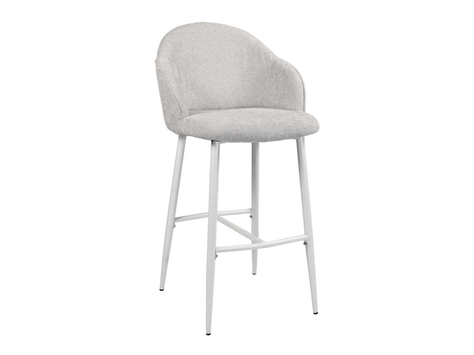 Міцна металева основа, пофарбована у витончений білий колір, додає стільцю легкості та візуальної гармонії. Завдяки висоті сидіння 68,5 см, модель ідеально підходить для кухонних островів і барних зон середньої висоти, а продумана ергономіка дозволяє зручно розташуватися навіть на тривалий час.