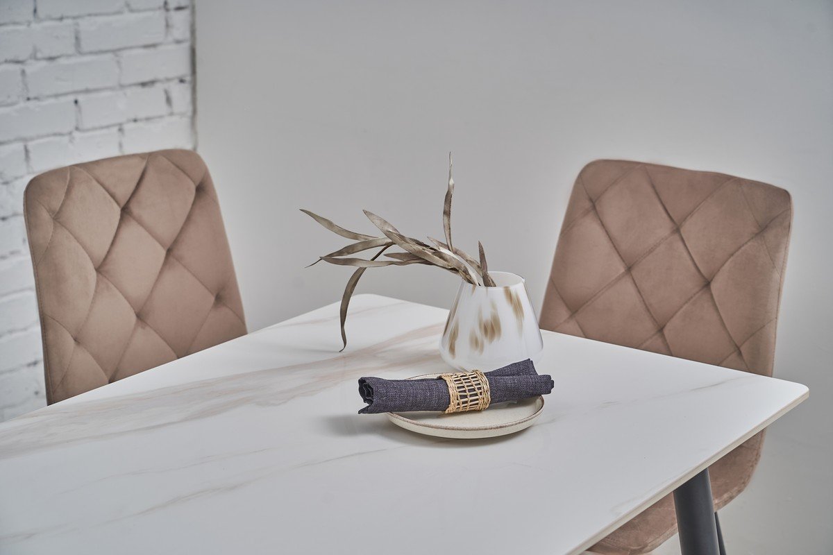 Обідній керамічний стіл TM-100 в кольорі Олімпо Вайт є ідеальним поєднанням сучасного стилю та практичності. Його елегантний білий колір стільниці, виконаний з глянцевої кераміки, імітує натуральний мармур з характерними прожилками. Цей колір надає столу свіжості та чистоти, створюючи світлу та повітряну атмосферу в інтер’єрі.