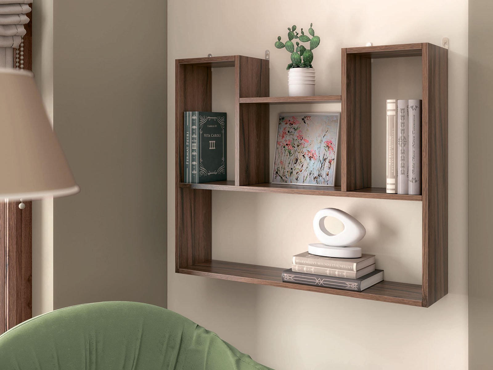 Полиця навісна №2 – допоможе розмістити улюблені книги, кімнатні рослини, предмети інтер’єру чи робочі матеріали. Її багаторівнева структура дозволяє створити зручну систему зберігання та ефектну декоративну композицію.