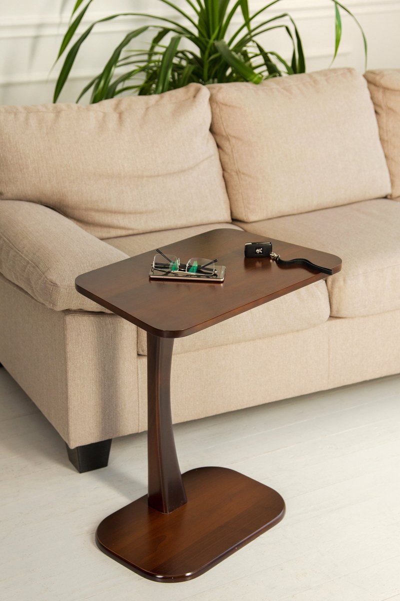 • Ніжка виготовлена з масиву натурального клена Стільниця та підніжка виконані з МДФ, покритої штучним шпоном Покритий італійським поліуретановим лаком Може використовуватися як підставка, кавовий столик або столик для ноутбука Стільниця із закругленими кутами Ш: 550 мм Г: 350 мм В: 640 мм Кольори: білий, темний горіх