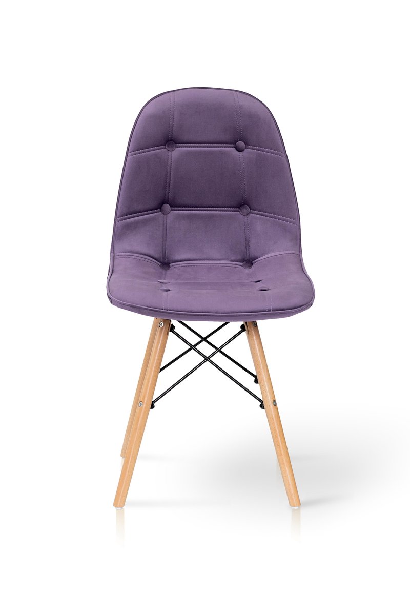 Основа сидіння: Фанера (гнутоклеєна). Оббивка – велюр. Ніжки – деревина, бук. Кріплення ніжок – метал. Висота: 84 см. Ширина: 46 см. Глибина: 50 см. Бузковий велюр HLR-33