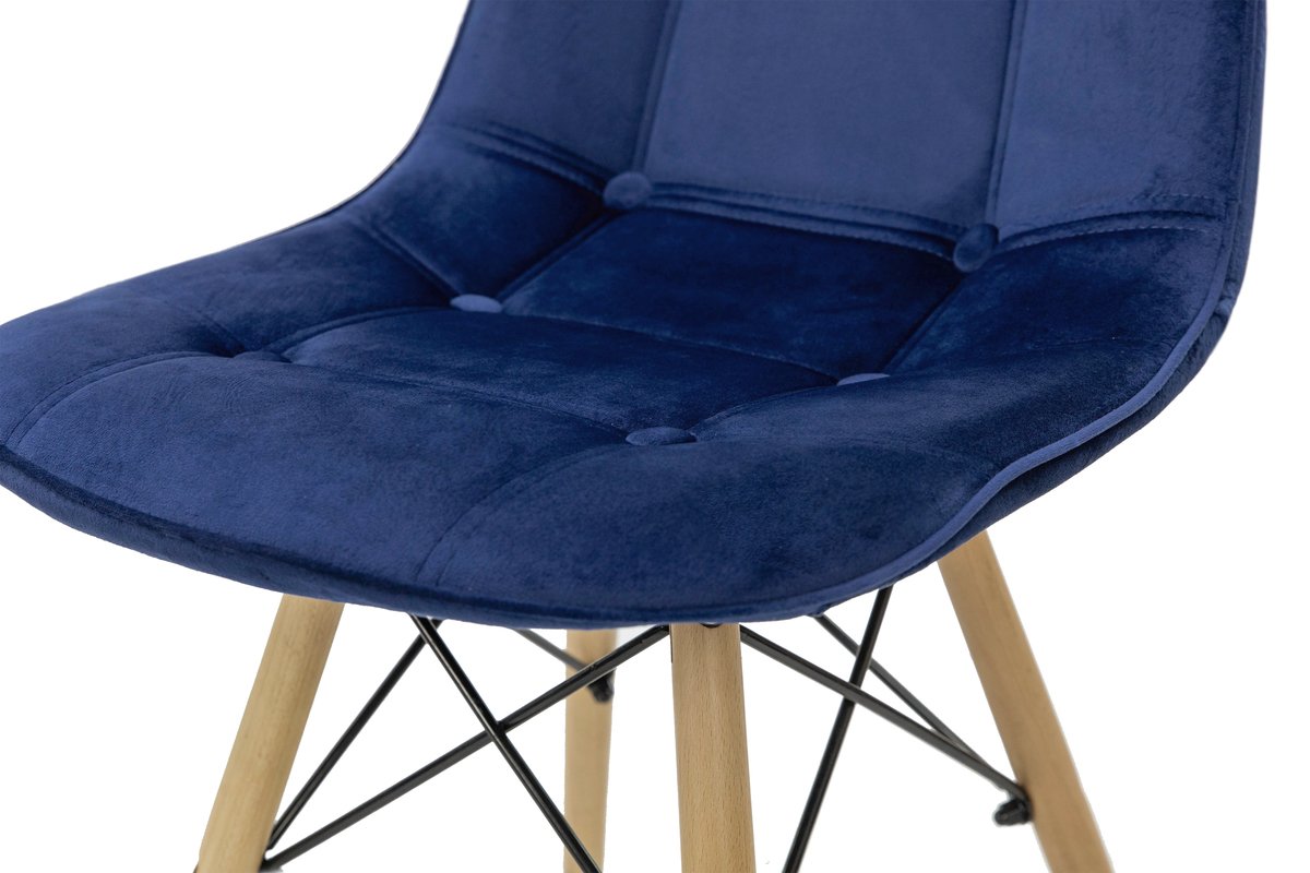 Основа сидіння: Фанера (гнутоклеєна). Оббивка – велюр. Ніжки – деревина, бук. Кріплення ніжок – метал. Висота: 84 см. Ширина: 46 см. Глибина: 50 см. Bluvel-86 велюр синій