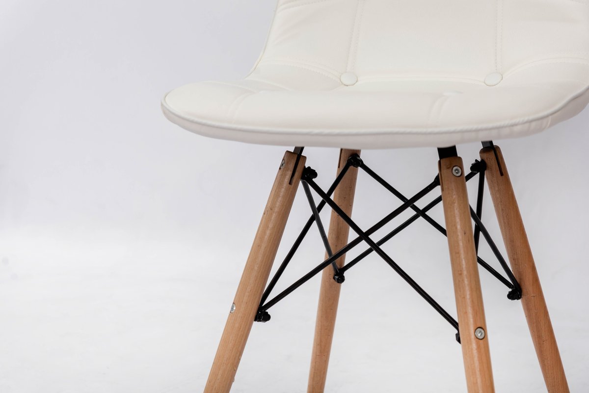 Основа сидіння: Фанера (гнутоклеєна). Оббивка – шкірзамінник. Ніжки – деревина, бук. Кріплення ніжок – метал. Висота: 84 см. Ширина: 46 см. Глибина: 50 см. Білий шкірзамінник LH-137