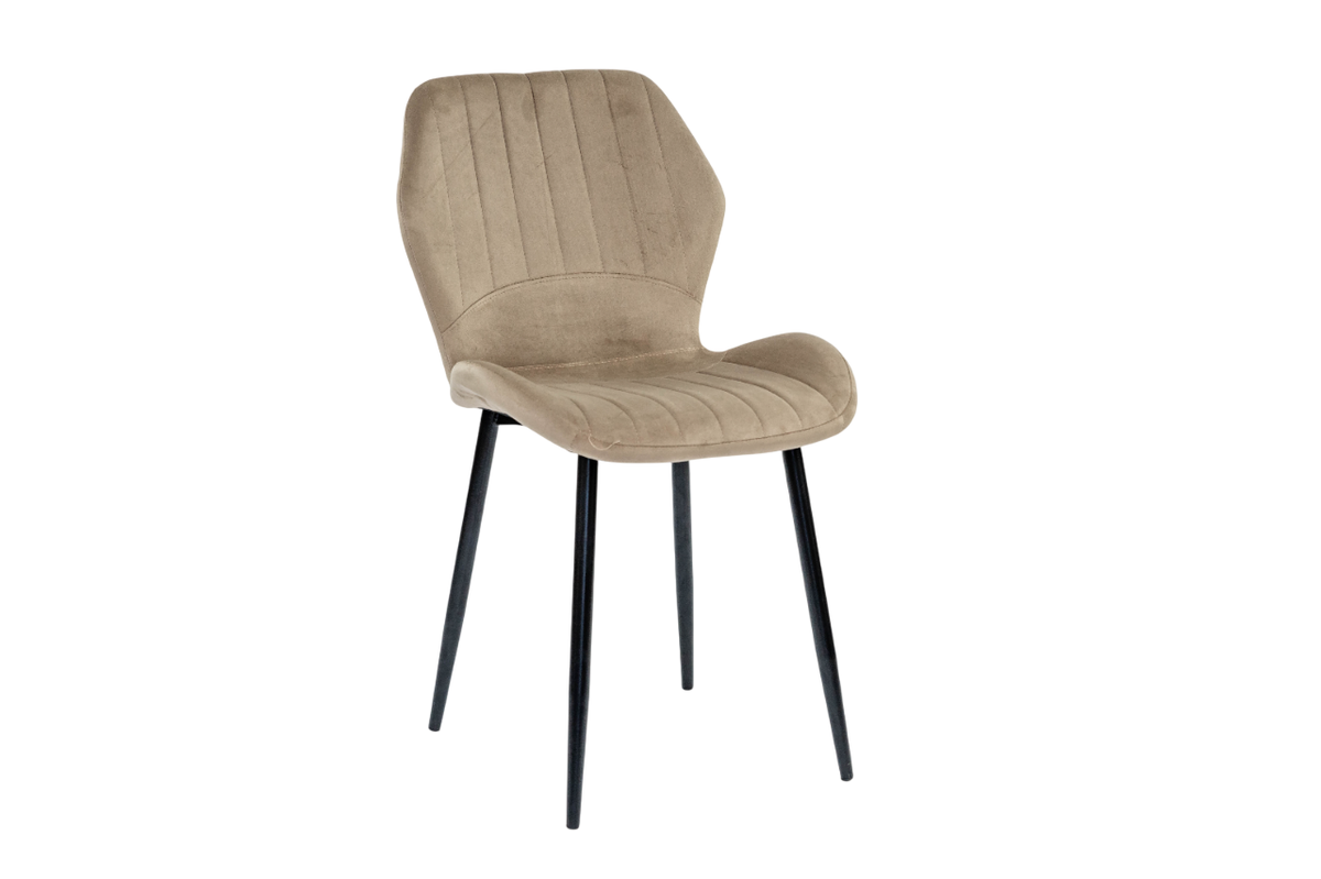 Розмір: В: 880 мм; Г: 400 мм; Ш: 480 мм. Колір: Каркас: Чорний; Сидіння: Капучіно Матеріал: Каркас: Метал; Сидіння: Фанера гнутоклеєна+тканина велюр.