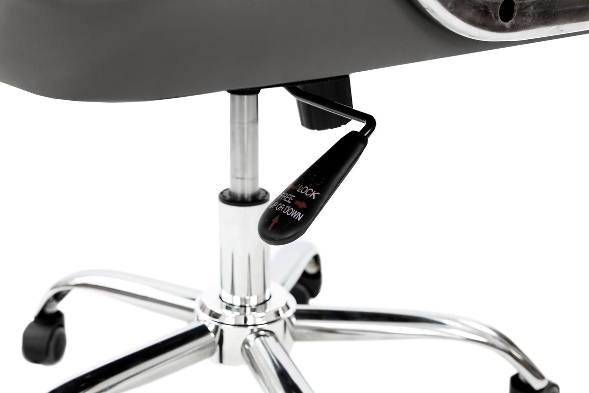 Висота стільця: 113 см. сидіння: Ш*Г – 52*50 см. спинка: Ш*В – 50*68 см. висота підлокіт. – 30 см. Основа сидіння: Фанера (гнутоклеєна), Ніжки – метал, хром ). Оббивка – шкірзам. Підйомний механізм – газліфт. Висота підйому 10 см