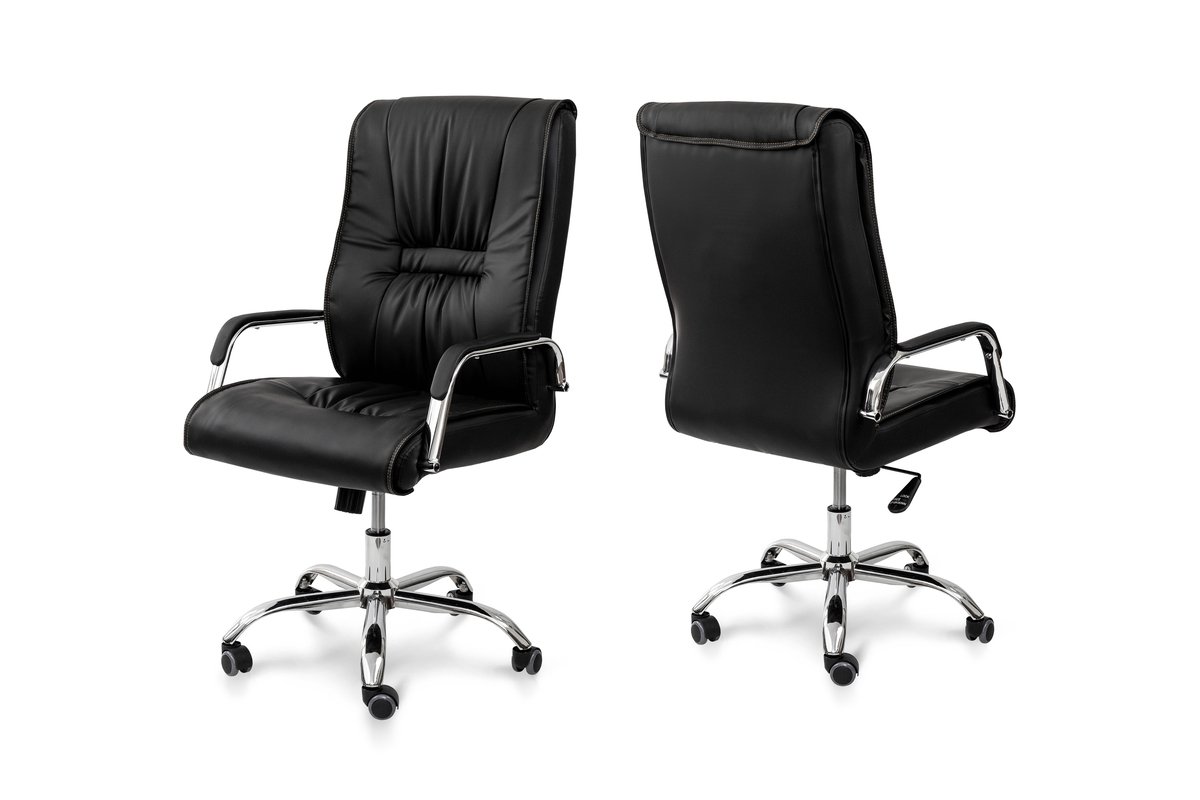 Розмір: Висота стільця: 110 см; Сидіння: Ш – 53 см; Спинка: В – 69 см; Висота підйому механізму: 10 см; Колір: Каркас: Хром; Сидіння: Коричневий, Оббивка: шкірзам. Матеріал: Каркас: Метал; Сидіння: Фанера гнутоклеєна. Ніжки – метал, хром. Підйомний механізм – газліфт