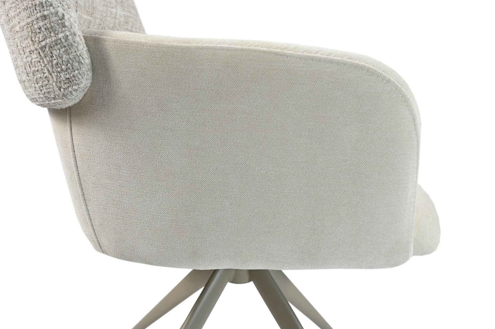 Стілець R-165 у відтінку “тофу” з основою кольору капучино — це ідеальний баланс елегантного дизайну та сучасної зручності. Його м’яка оббивка з шенілу приємна на дотик і довговічна, а ергономічна форма з підлокітниками забезпечує максимальний комфорт під час сидіння.