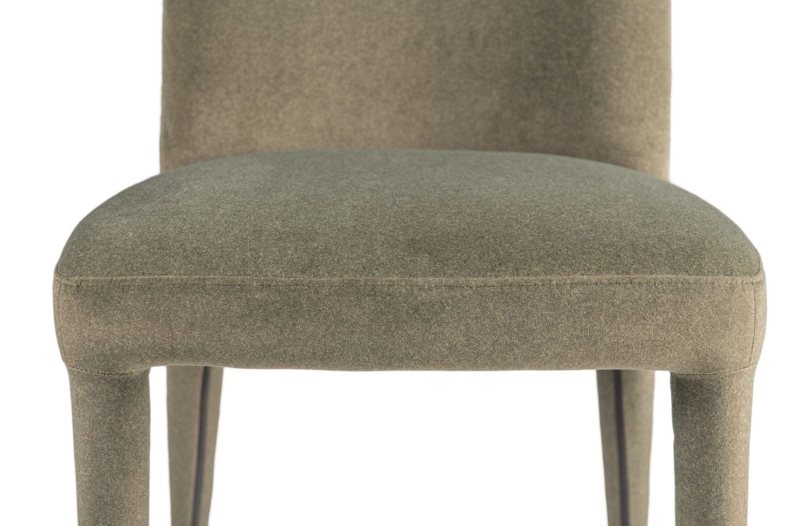 Оббивка стільця виконана з розкішного мохеру у відтінку “дугласія”. Цей глибокий, благородний колір асоціюється зі спокоєм природи, створюючи атмосферу затишку та гармонії. Мохер не лише приємний на дотик, а й надзвичайно практичний — стійкий до зношування та зберігає свою м’якість навіть при щоденному використанні.