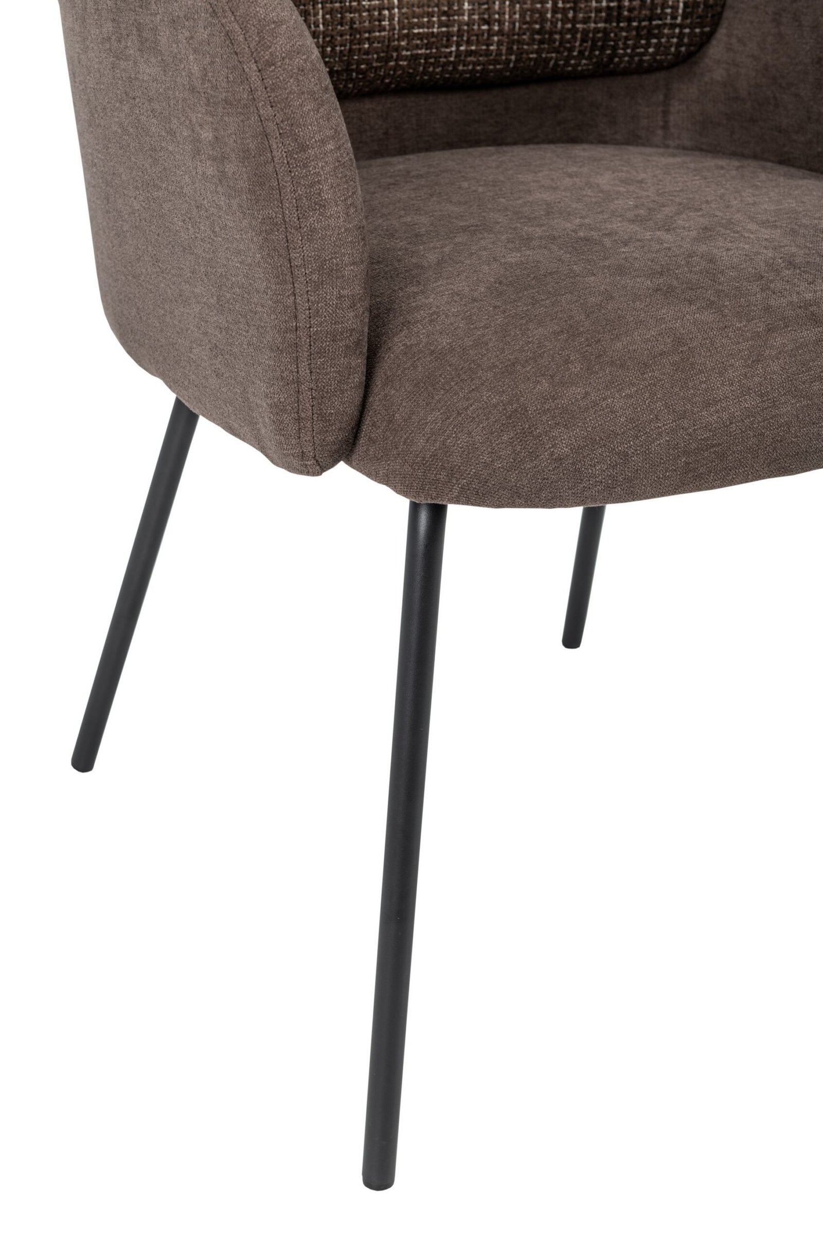 М’яка оббивка з шенілу приємна на дотик і забезпечує зручність навіть під час тривалого сидіння. Підлокітники додають додаткової підтримки, а фарбована металева основа гарантує надійність та стійкість конструкції.