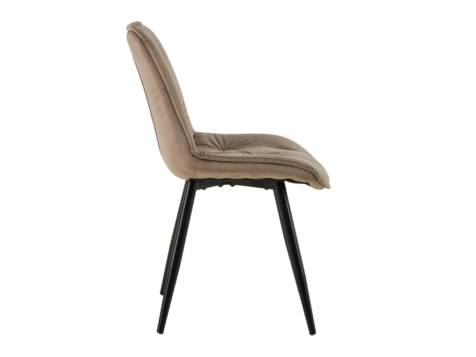 Стілець M-48 у поєднанні капучино велюру та чорного каркаса — це втілення елегантної простоти та сучасного стилю. Теплий капучино відтінок оббивки додає стільцю м’якої розкішності, створюючи атмосферу затишку та комфорту. Велюрова тканина не тільки приємна на дотик, але й надає виробу витонченого вигляду, який органічно поєднується з чорним каркасом.
