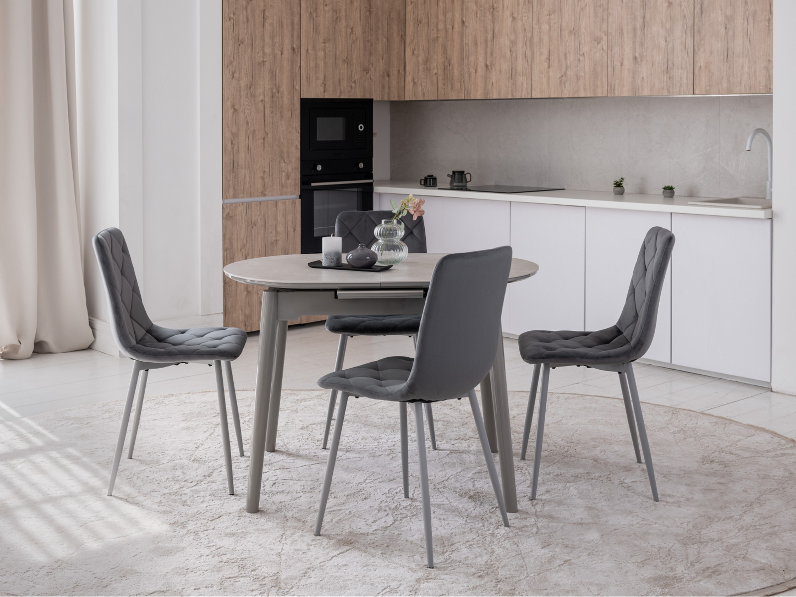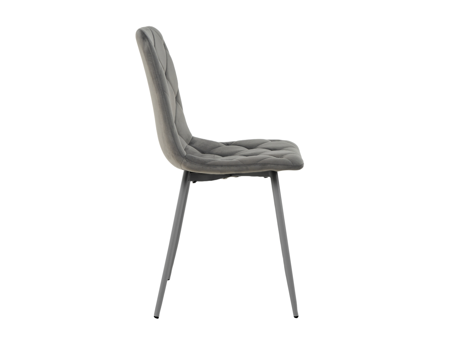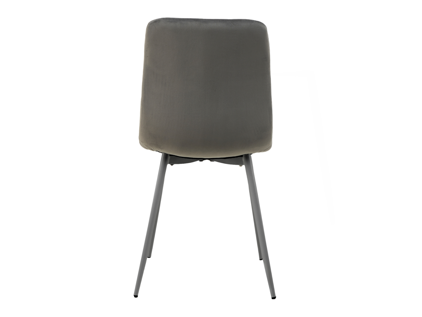 У поєднанні з фарбованим металом, що є основою стільця, цей виріб виглядає не лише естетично, а й демонструє надзвичайну міцність і довговічність. Темно-сірий відтінок оббивки, що немов облагороджує будь-який простір, вражає своєю глибиною та універсальністю — він додає відчуття стабільності та спокою, одночасно створюючи відчуття легкості завдяки контрасту з сірим каркасом.