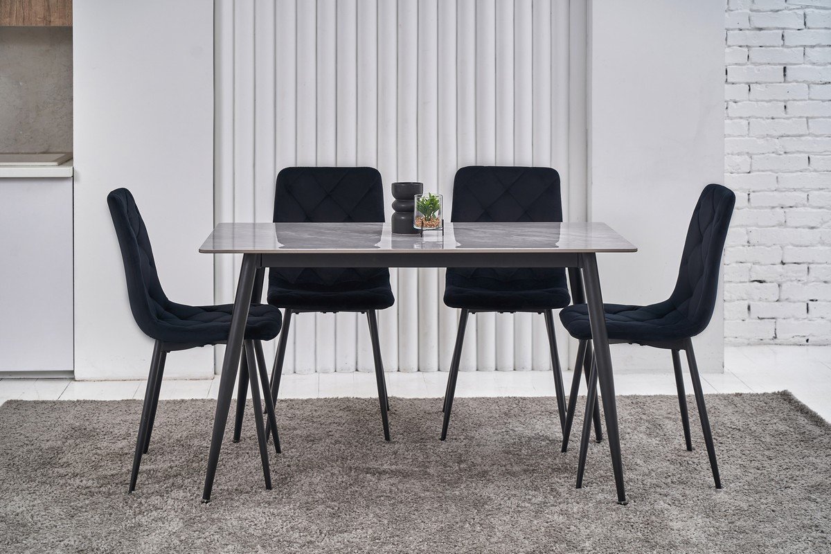 Стілець N-41 у повністю чорному кольорі виглядає елегантно та вишукано. Завдяки поєднанню чорної велюрової оббивки та фарбованого металевого каркаса, цей стілець додає інтер’єру розкіш і сучасний вигляд. Він гармонійно вписується як у мінімалістичний, так і в більш класичний стиль.