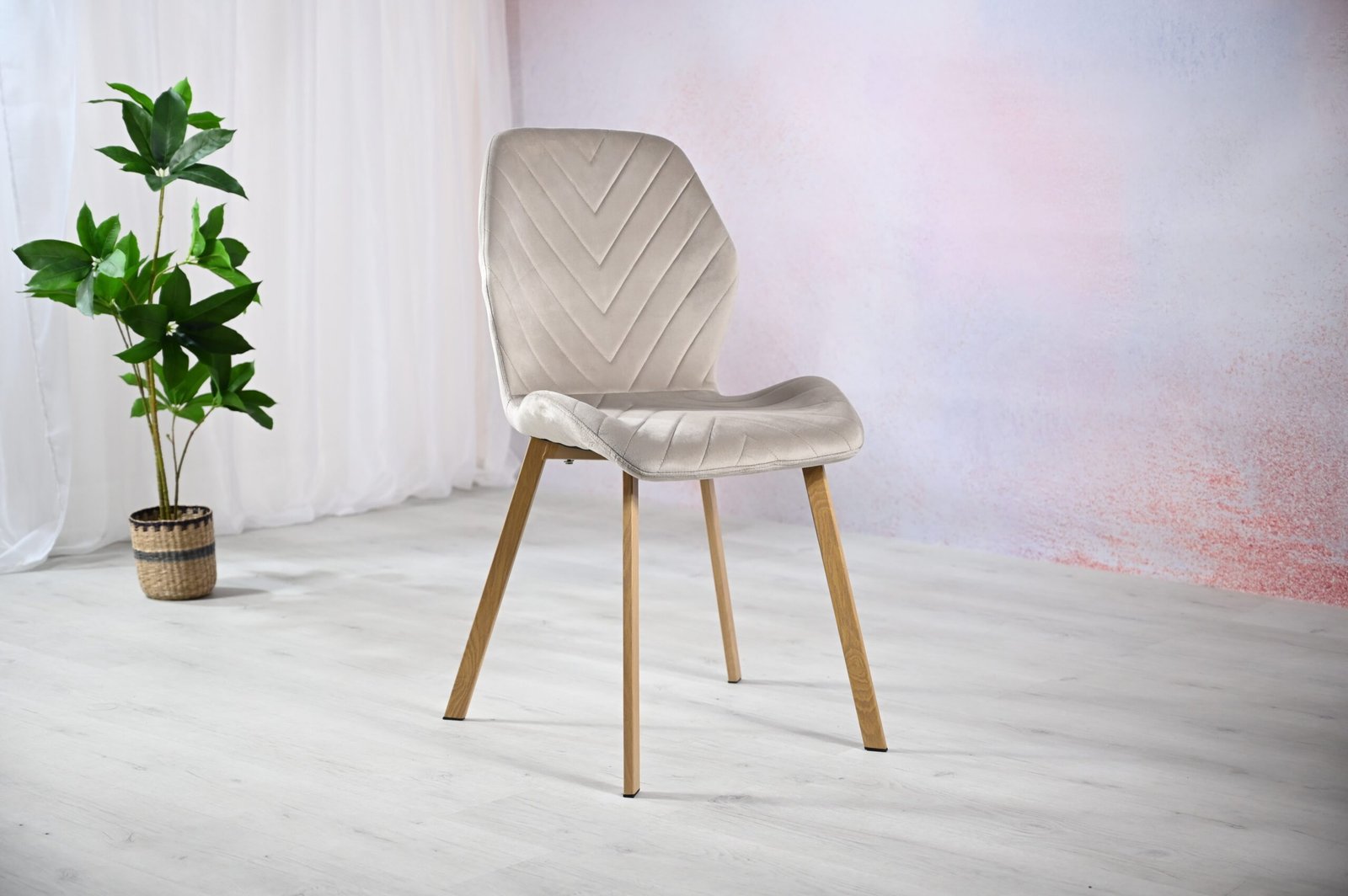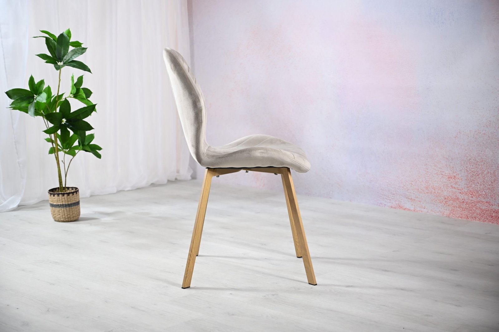 Стілець N-54 капучино велюр + дуб — це зразок елегантності й комфорту, який легко впишеться в інтер’єр сучасного дому. Відтінок капучино, який використано в оббивці з м’якого велюру, створює атмосферу тепла і затишку. Велюрова поверхня не лише додає вишуканості, але й приємна на дотик, що робить кожне сидіння комфортним та розслаблюючим.