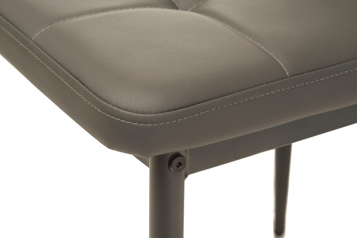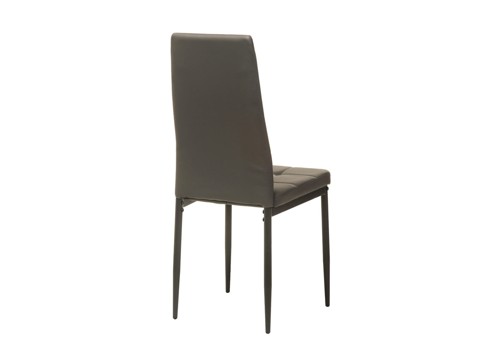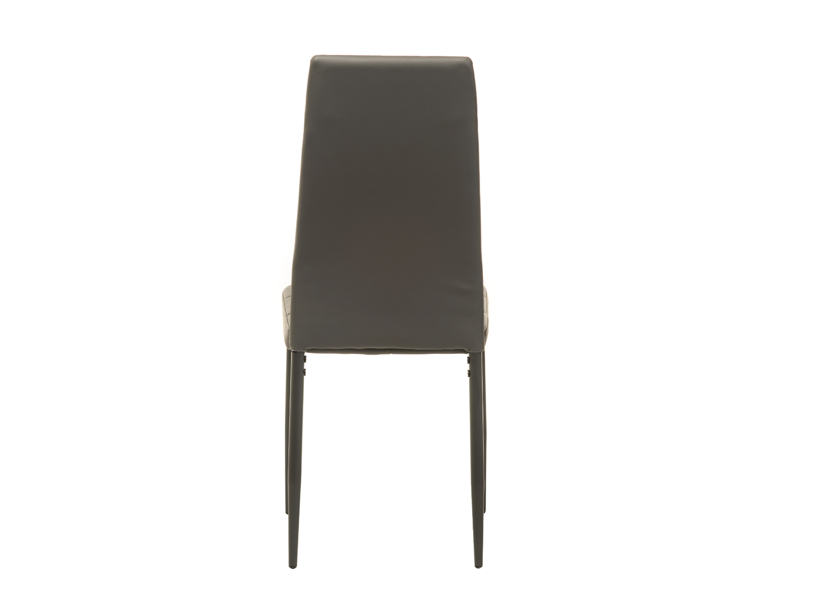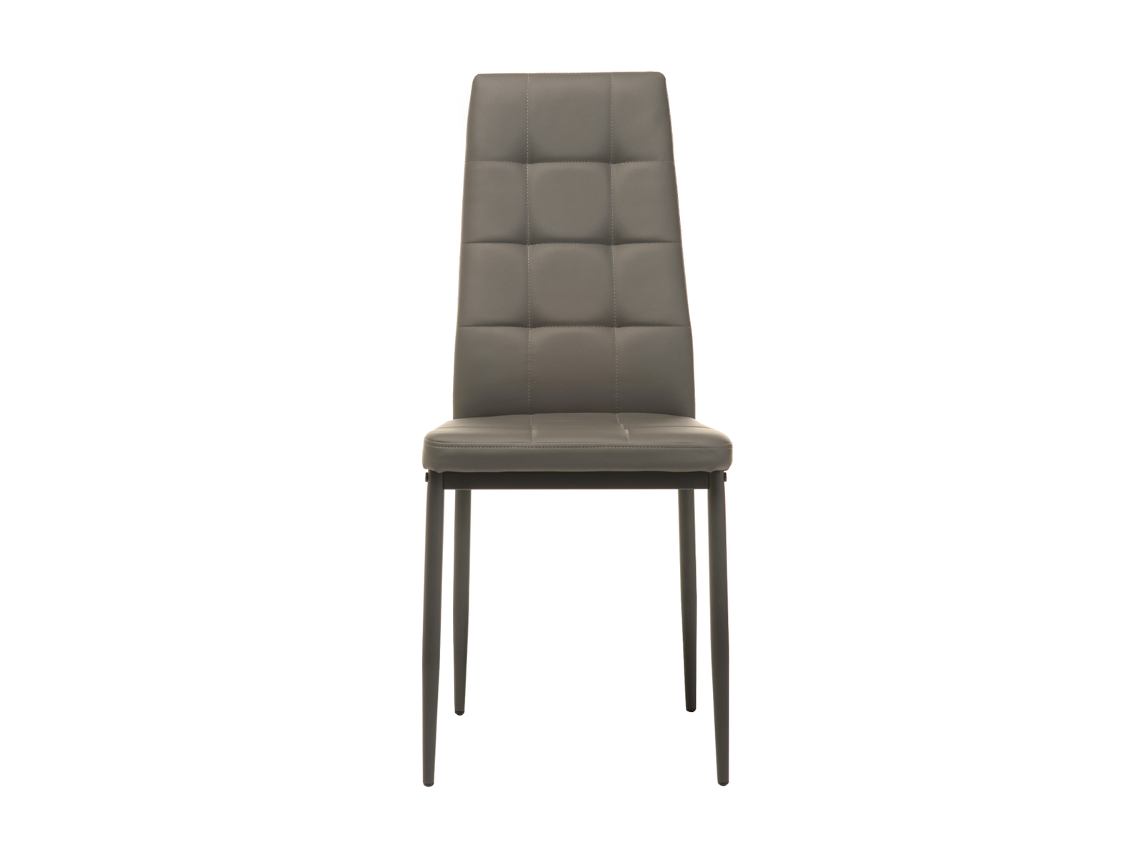 Стілець N-66-2 у сірому кольорі є сучасним і функціональним рішенням для облаштування кухні, вітальні або їдальні. Його оббивка зі штучної шкіри має привабливий сірий відтінок, що надає меблям універсальності й стилю. Еко-шкіра легко чиститься, що робить її практичною для щоденного використання.