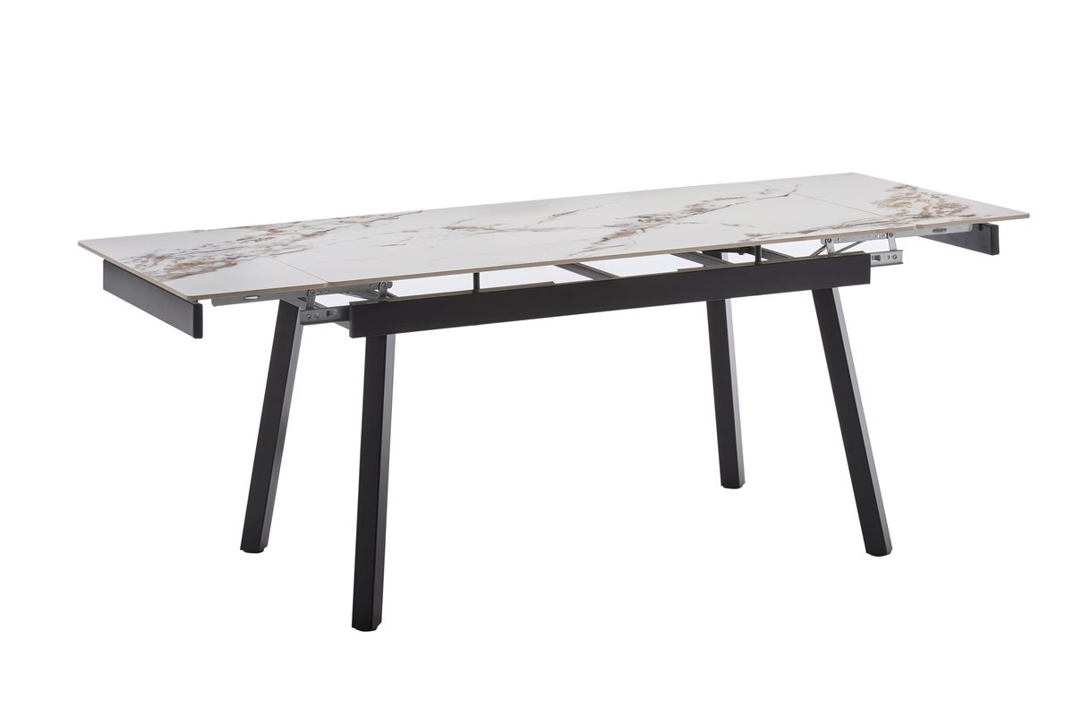 Розмір: 140(+30+30) × 80 см; Висота: 76 см; Колір: Ніжки: Чорний; Столешня: кераміка нефрит білий; Матеріал: Ніжки і каркас: метал; Столешня: кераміка товщиною 12 мм