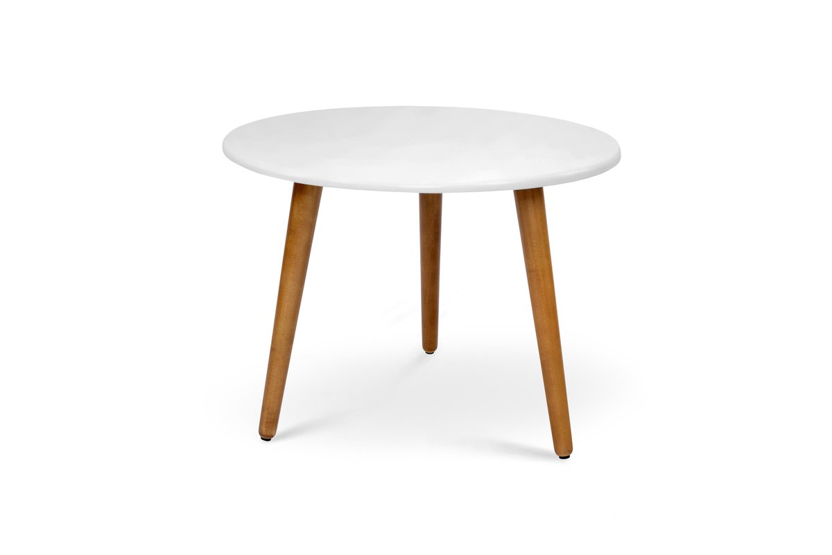 Розмір: D = 610 мм; H = 450 мм. Колір: ясен/білий. Матеріал: Каркас: масив клена; столешня: МДФ фарбований;