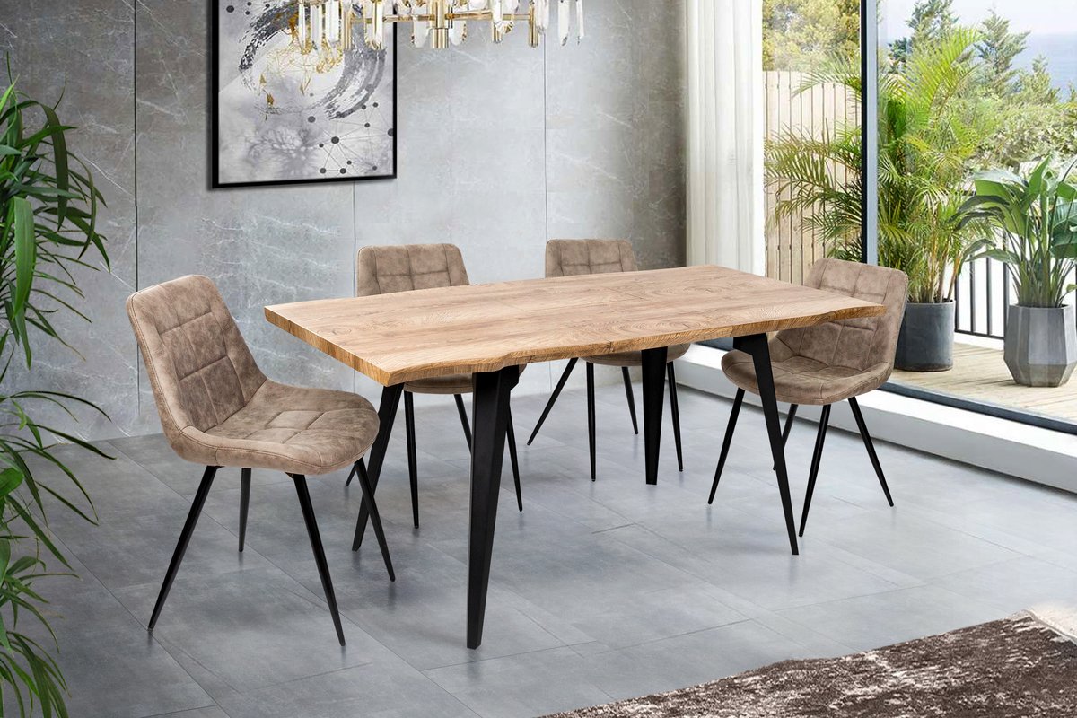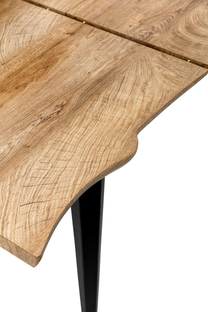 Основа столешні: МДФ 38 мм товщиною. Тонкий шар матеріалу з ефектом деревини (каширований цільнорулоний папір). Ніжки – метал порошкова покраска, колір чорний