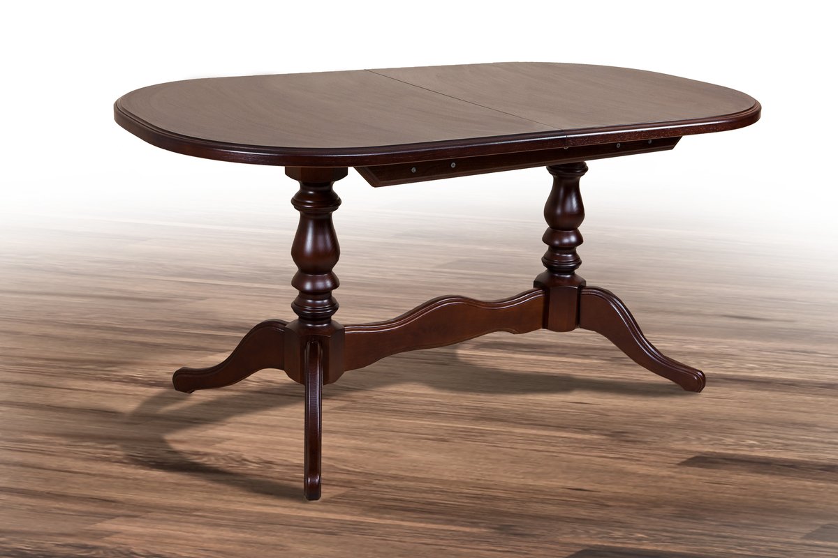 Розмір: 150(+40)*90 Колір: Темний горіх Матеріал: Каркас: масив сосни; столешня: МДФ фарбований. Прекрасний вибір для великої гостьової кімнати – розкладний столик з натурального дерева, висока якість виконання – буде довго служити і радувати Вас і Ваших близьких! Покриття лаком надає МДФу додаткову стійкість до механічних пошкоджень (царапин, сколів) та вологи. Декоративні елементи – точені ніжки та основа столу Вавілон від компанії МІКС Мебіл роблять його зовнішній вигляд неповторним і яскравим.