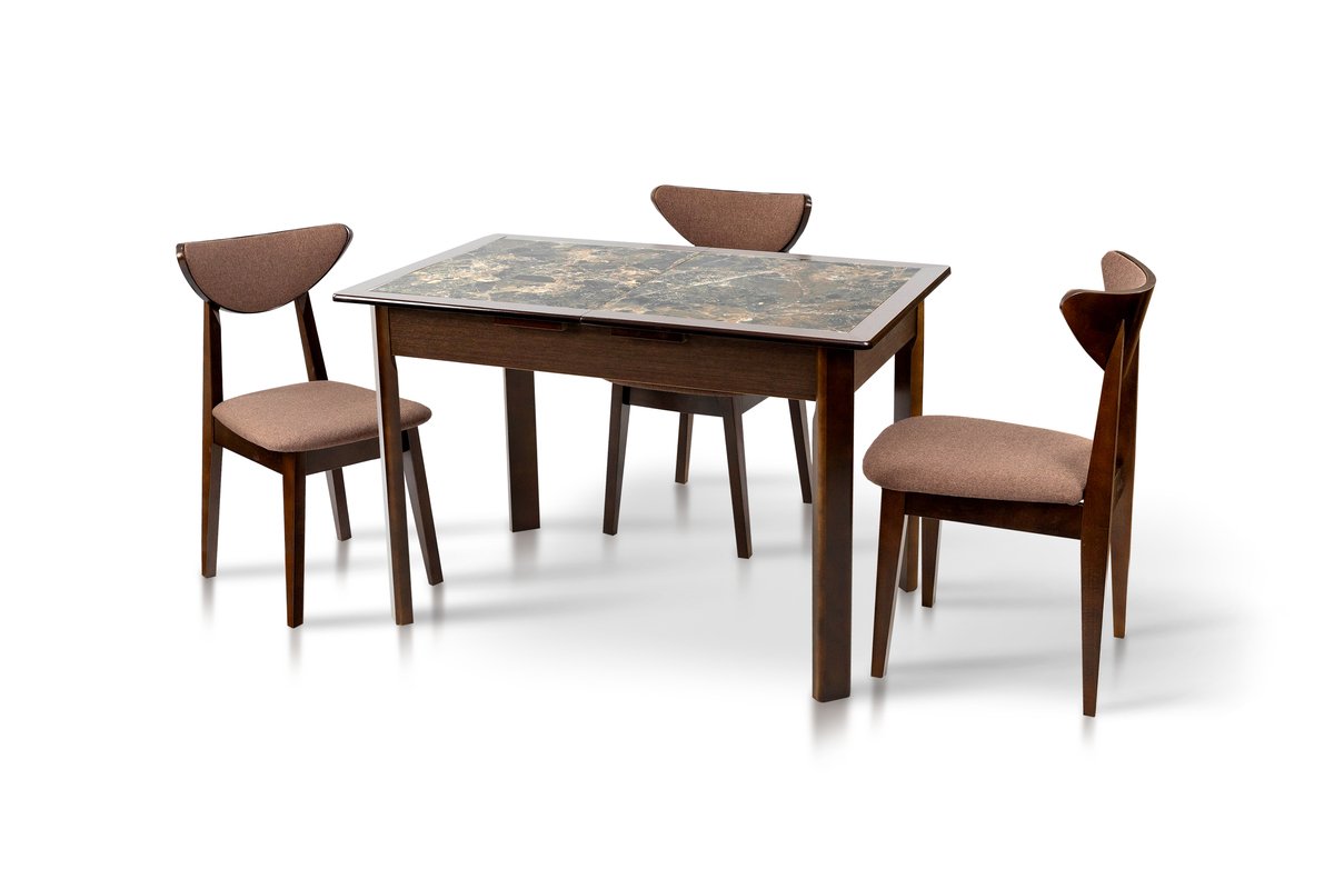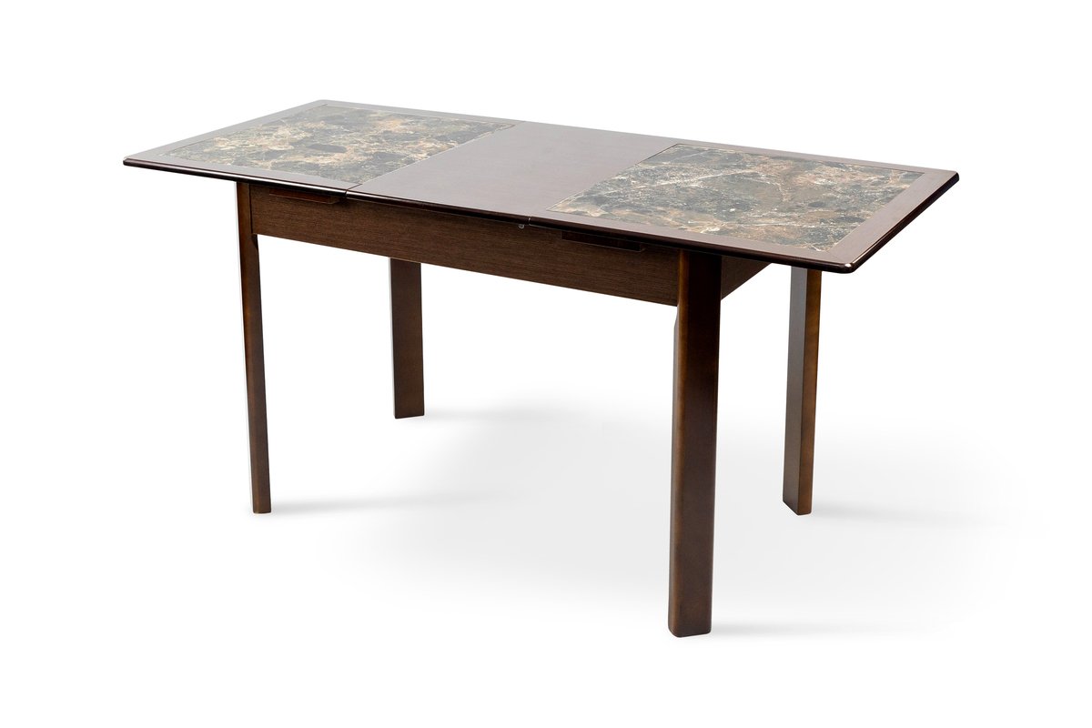 Розмір: 1150(+390)*740 (розкладний);Колір: темн горіх;Матеріал: Каркас: штучний шпон, Столешня: штучний шпон+кераміка.