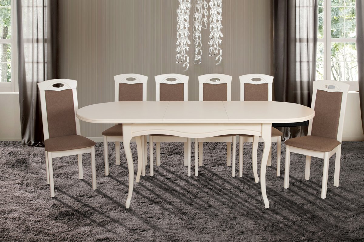 Розмір: 1500(+500)*845 Колір: білий, бежевий Матеріал: Каркас: масив клена; столешня: МДФ зі штучним шпономРозкладний стіл «Олівер» — зробить Вашу вітальню, місцем приємних обідів і вечері, веселих посиденьок з друзями, цей стіл ідеально впишеться і внесе в інтер’єр Вашого будинку, той необхідний затишок Кухонний стіл «Олівер» виконаний в класичному стилі з застосуванням натурального дерева — каркас і ноги з масиву Клена, стільниця з МДФ покрита штучним шпоном, така стільниця володіє наявністю стійкості до механічних пошкоджень і води. Вставка 50 см.