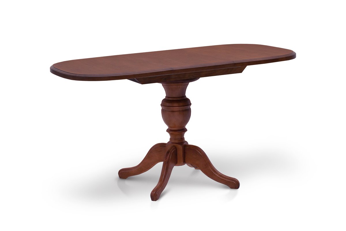 Розмір: 105(+40)*75 Колір: Горіх італійський Матеріал: Каркас і ніжки: Масив сосни; Столешня: Шпонований дубом МДФ Тріумф – розсувний овальний стіл для вітальні з елегантною точеною ніжкою, виготовлений з натурального дерева. Торці столу гарно фрезеровані та пофарбовані. Столик виготовлений із масиву натурального дерева (каркас та ніжки). Натуральна деревина – це матеріал, який фактично позбавлений недоліків, тому що вона щільна, тверда, красива. Стільниця виготовлена з плити МДФ, покритої шпоном.