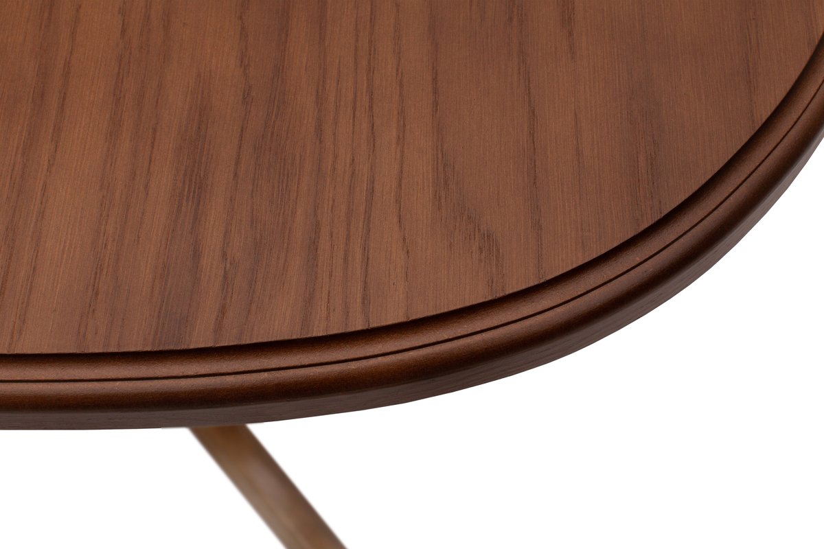 Розмір: 105(+40)*75 Колір: Рустікаль Матеріал: Каркас і ніжки: Масив сосни; Столешня: Шпонований дубом МДФ Тріумф – розсувний овальний стіл для вітальні з елегантною точеною ніжкою, виготовлений з натурального дерева. Торці столу гарно фрезеровані та пофарбовані. Столик виготовлений із масиву натурального дерева (каркас та ніжки). Натуральна деревина – це матеріал, який фактично позбавлений недоліків, тому що вона щільна, тверда, красива. Стільниця виготовлена з плити МДФ, покритої шпоном.