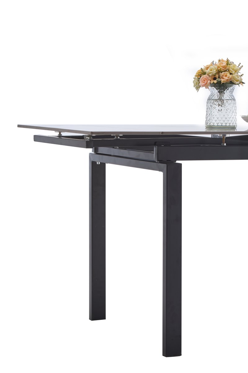 Розмір: 100(+25+25) × 70 см; Висота: 76 см; Колір: Ніжки: Чорний; Столешня: кераміка Армані грей (сірий); Матеріал: Ніжки і каркас: метал; Столешня: кераміка товщиною 12 мм