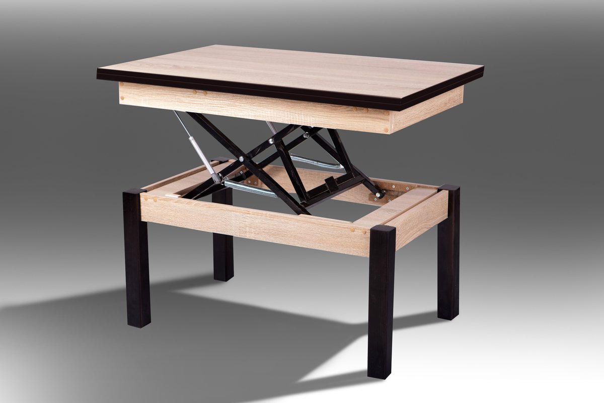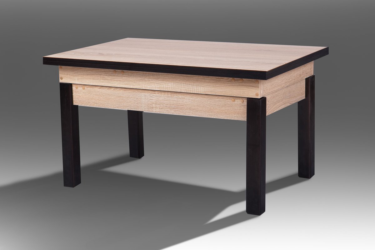 Розмір: Довжина 902 (1204), Ширина 602 (902), Висота 520 (750) Колір: Ніжки: чорний; Столешня: ДСП – SWISSPAN І Дуб сонома Матеріал: Ніжки: масив дерева; Столешня: ДСП Стіл-трансформер Флай від компанії МІКС Меблі – це чудове рішення як для невеликих приміщень так і для вітальних кімнат та дач. Займає в складеному виді дуже мало місця, але коли його розкласти, то він стає повноцінним обіднім столом. Його габарити: у складеному виді (ДШВ), мм 902 * 602 * 520, в розкладеному – 1204 * 902 * 750. Стільниця столу виготовлена з сучасного високоякісного ДСП, яке відповідає всім існуючим стандартам в Україні.Механізм трансформації виготовлений із квадрат-труби товщиною 16*16мм., пофарбованої порошковою фарбою, що дозволяє витримувати будь-які навантаження (в розумних межах). Механізм оснащений газовими амортизаторами та пружинами. Це сприяє м’якому підйому стільниці перед розкладкою. Опори столу виготовлені з екологічно чистих порід деревини.