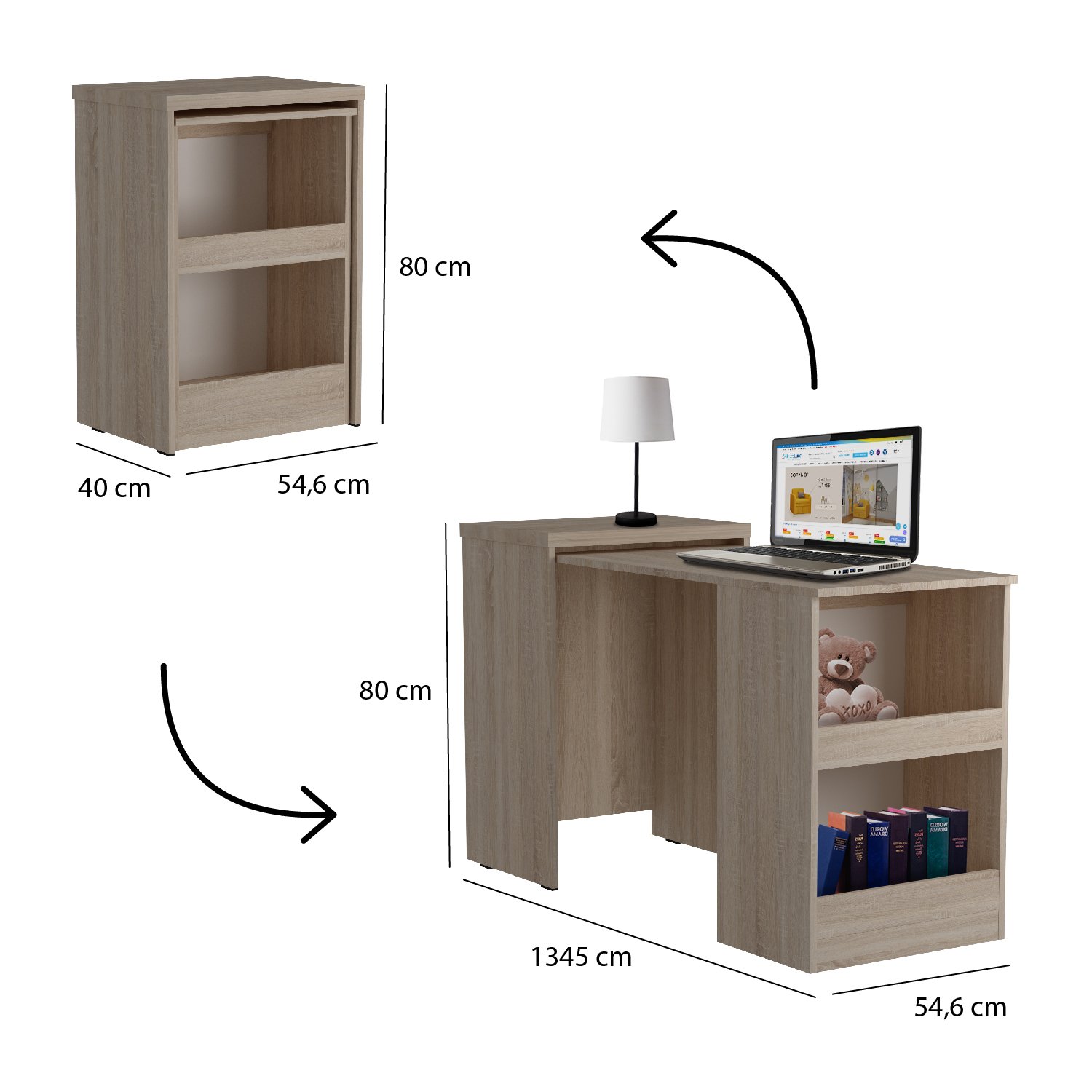 Стіл-трансформер Smart/Смарт 1Цей стіл-трансформер – ідеальне рішення для тих, хто цінує практичність та функціональність у меблях. Завдяки інноваційному дизайну, він легко трансформується, забезпечуючи зручність у використанні та ефективне використання простору.Його розміри складають 546х400х800 мм, а розкладений вигляд досягає 1345х546х800 мм, що робить його ідеальним як для невеликих, так і для більших приміщень. Виготовлений з високоякісного ЛДСП товщиною 16 мм, класу Е1, цей стіл гарантує довговічність та безпеку використання.Кришка тумби товщиною 32 мм забезпечена протиударним краєм, що збільшує його стійкість та довговічність. Механізм з шумопоглинаючими роликами та резиновими елементами забезпечує плавне та безшумне відкривання та закривання.З двома відкритими полицями, цей стіл дозволяє зручно організувати простір, зберігаючи речі поряд і легко доступними. Завдяки своїй універсальності та функціональності, цей стіл-трансформер стане невід’ємною частиною вашого домашнього або офісного інтер’єру, забезпечуючи комфорт та зручність у щоденному використанні.
