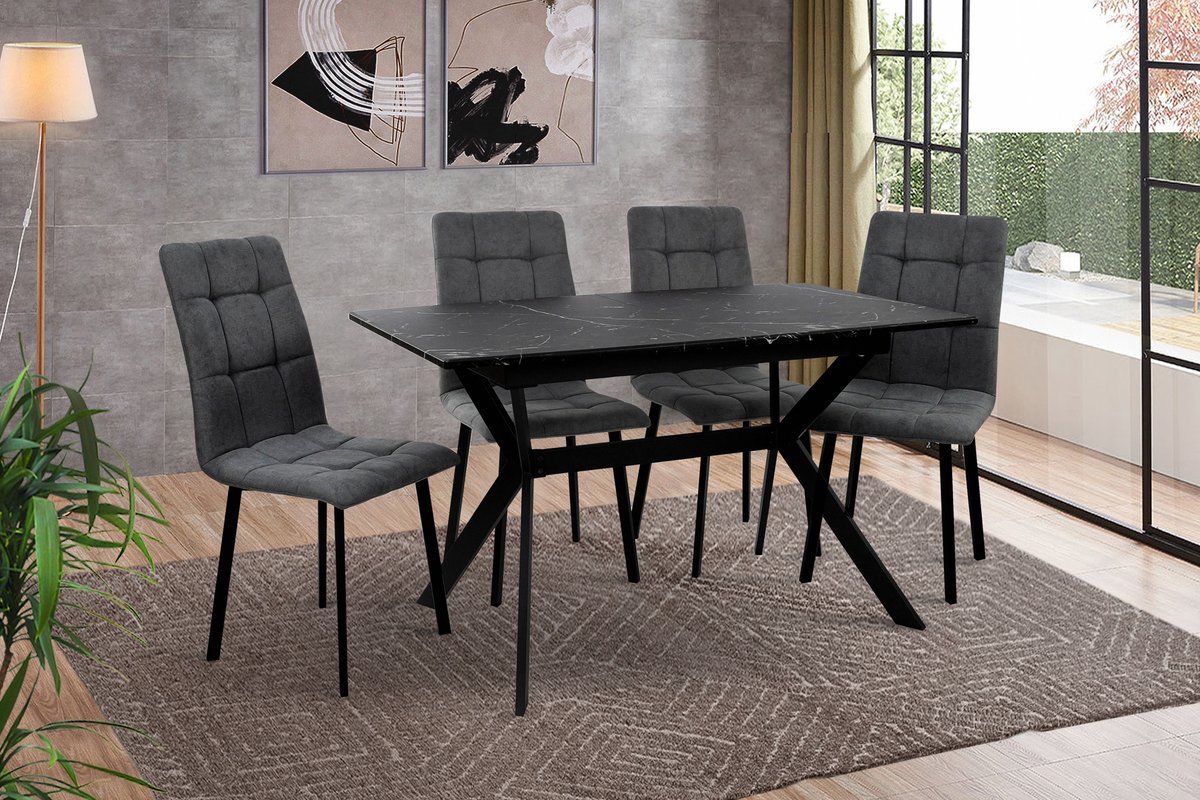 Розмір: 1300(+400)*770. Колір: Каркас і ніжки: чорний; Столешня: Мрамор темний. Матеріал: Каркас і ніжки: Метал; Столешня: МДФ у ПВХ плівці. Вкладка у стіл з механізмом "бабочка". Товщина столешні: 20 мм. Каркас і ніжки: порошкова покраска