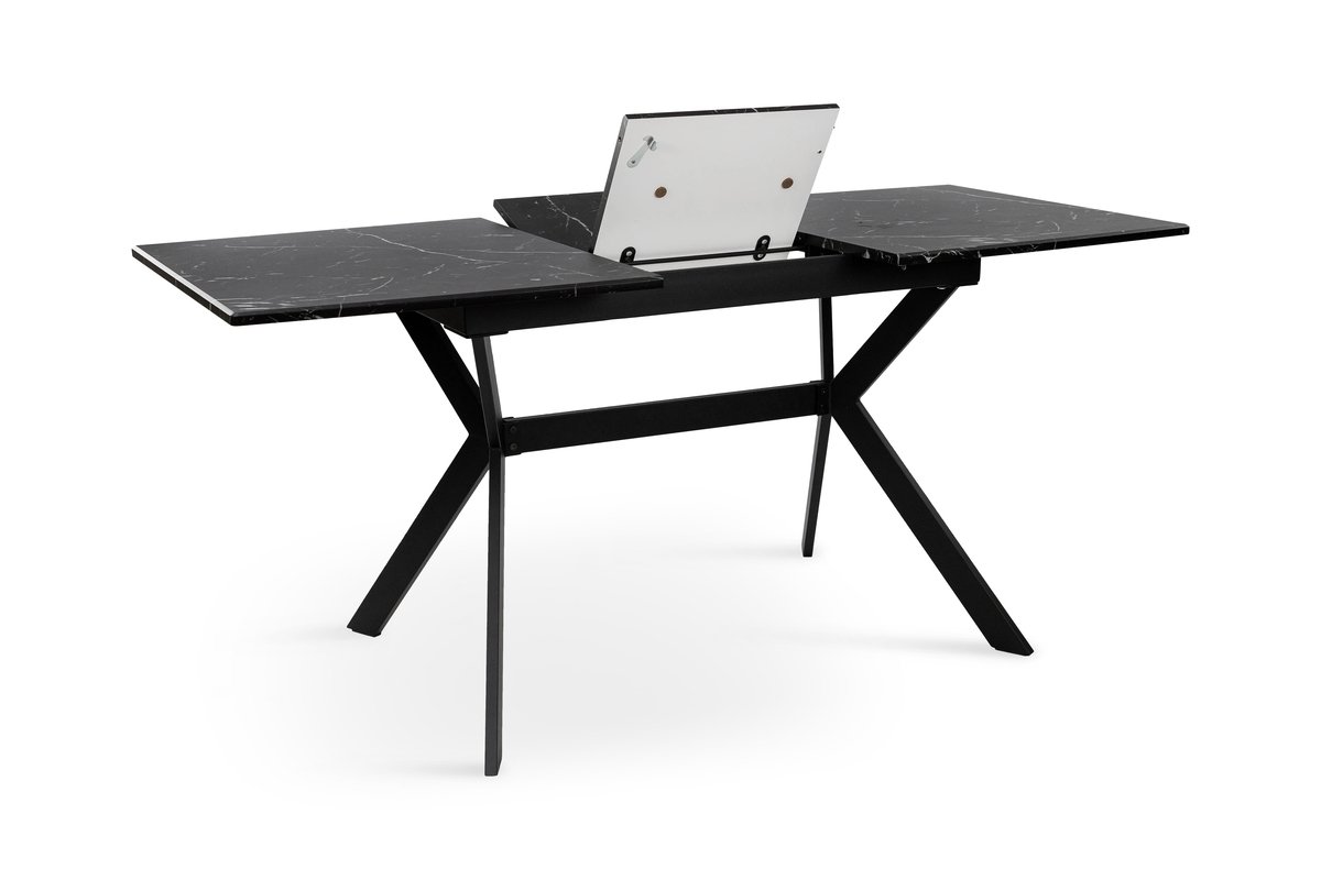 Стіл Хьюстон 130(+40)*77 чорний метал/мрамор чорн
