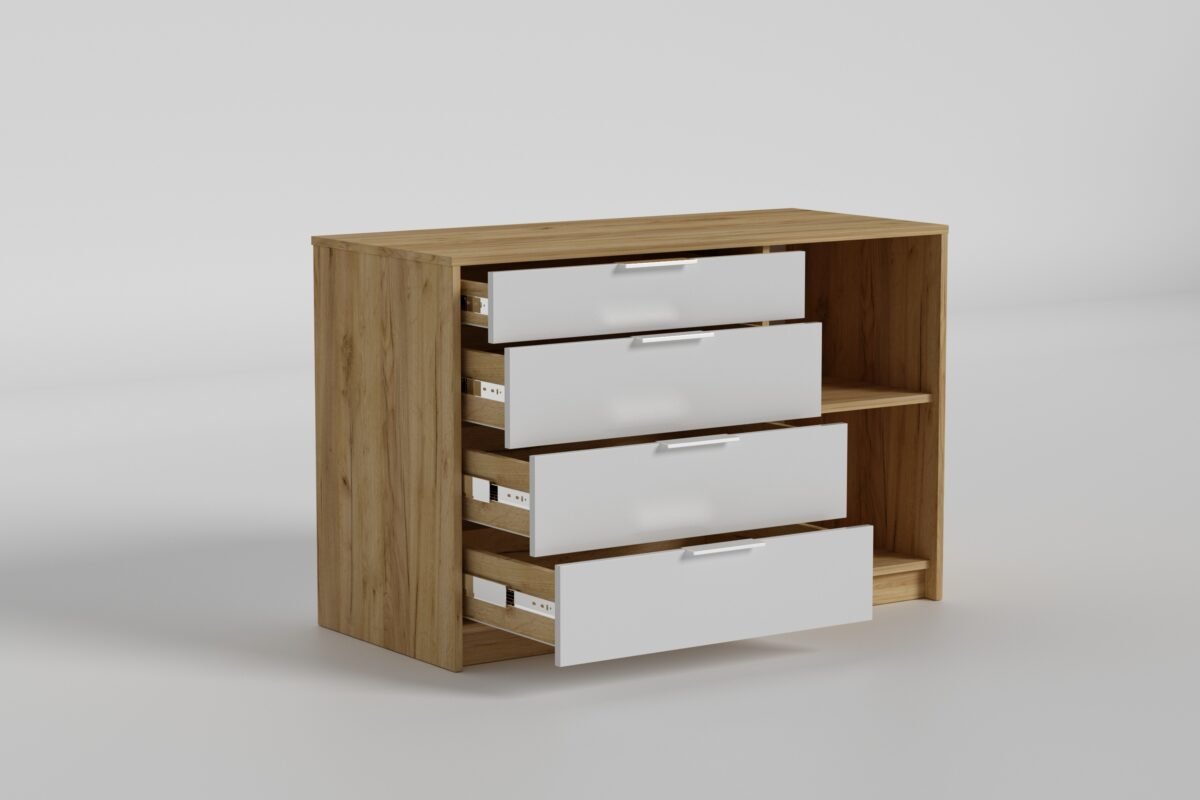 Практичний дизайн комода забезпечує легкий доступ до вмісту та сприяє підтримці порядку у приміщенні. Завдяки компактній формі, він легко вписується в різні типи інтер’єру, не займаючи багато місця.