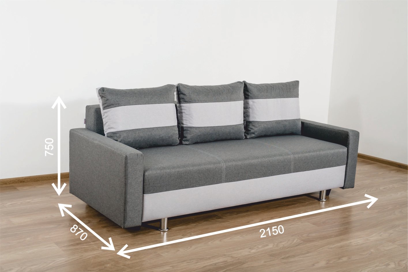 Benefit 22 — прямий диван, який поєднує комфорт, функціональність і акуратний сучасний вигляд. Наповнення: посилений пружинний блок 11 см типу Боннель – пінополіуретан. Базове виконання у тканині: Savanna nova 08 grey (Exim) + Malmo 83 (Exim).. Механізм: Єврокнижка. Спальне місце: 1.85×1.40. Габаритний розмір: 2.15×0.87×0.75.