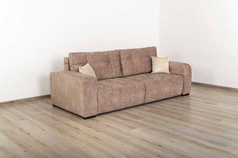 Benefit 87 — кутовий диван для щоденного відпочинку та комфортного використання вдома. Наповнення: пружина змійка – пінополіуретан диван-кут. Базове виконання у тканині: А867-5 (Unitex) + Velluto 2 Beige Squares M (Dekora Group).. Механізм: Єврокнижка. Спальне місце: 2.04х1.64. Габаритний розмір: 2.52х1.12х0.95 2.52х1.70х0.95.
